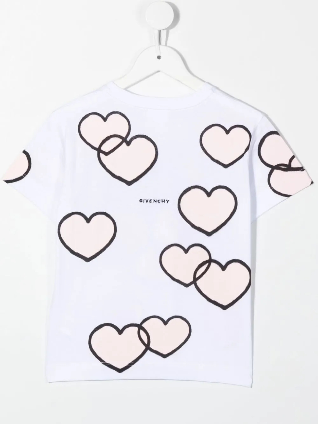 Белый, хлопок, мультипликационный принт, принт с изображением сердца, круглый вырез, короткие рукава и прямой подол.