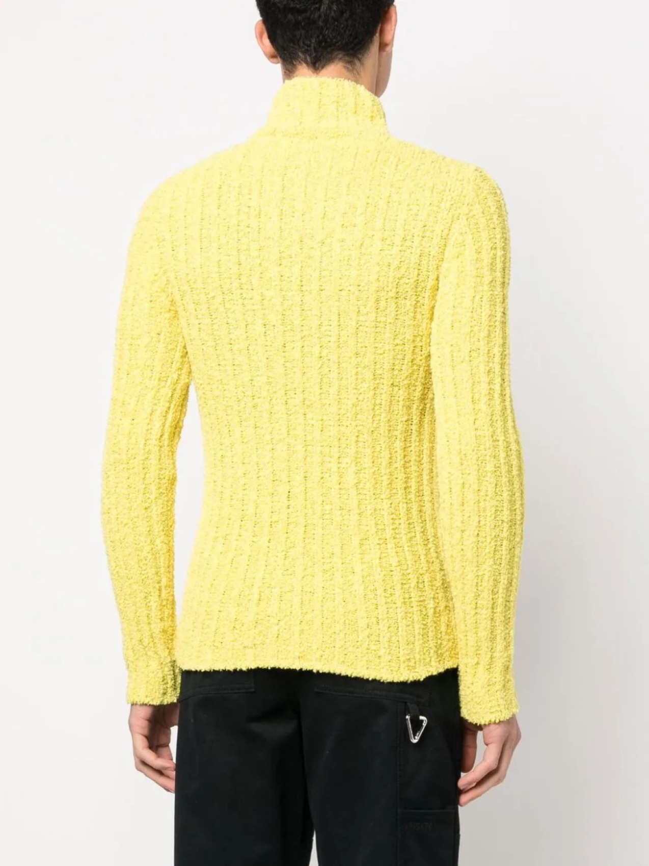 Канареечный, смесовый хлопок, трикотаж в рубчик, высокий воротник, длинные рукава и модель анорак.