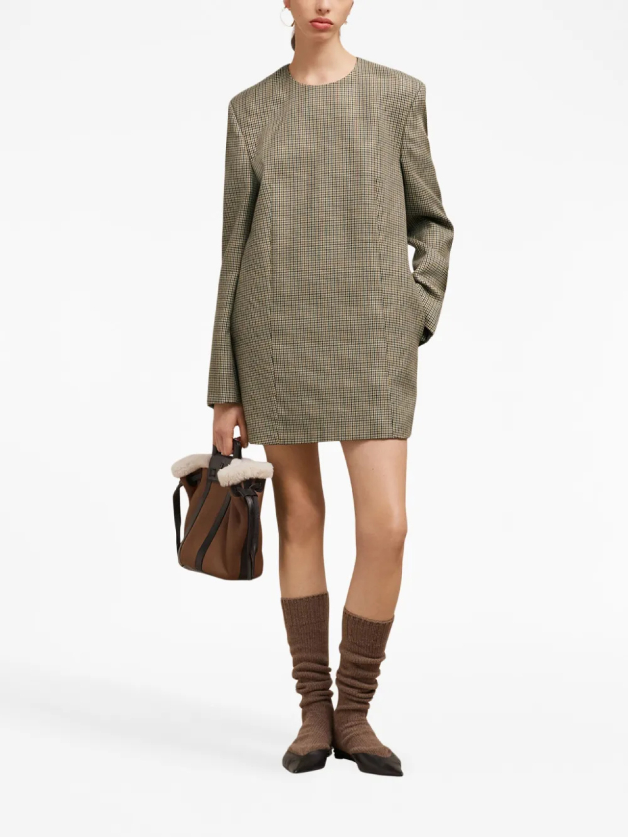 AMI Paris клетчатое платье мини с длинными рукавами, нейтральный