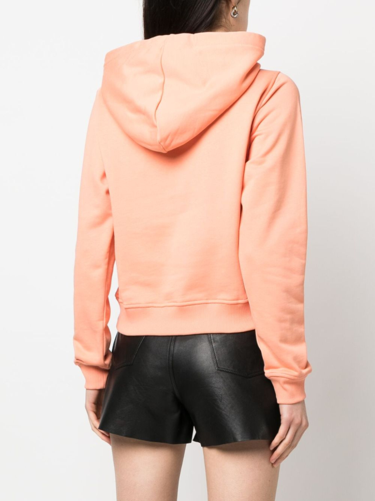 Коралл, хлопок, нашивка с логотипом на груди, объемный капюшон на шнурке и длинные рукава.