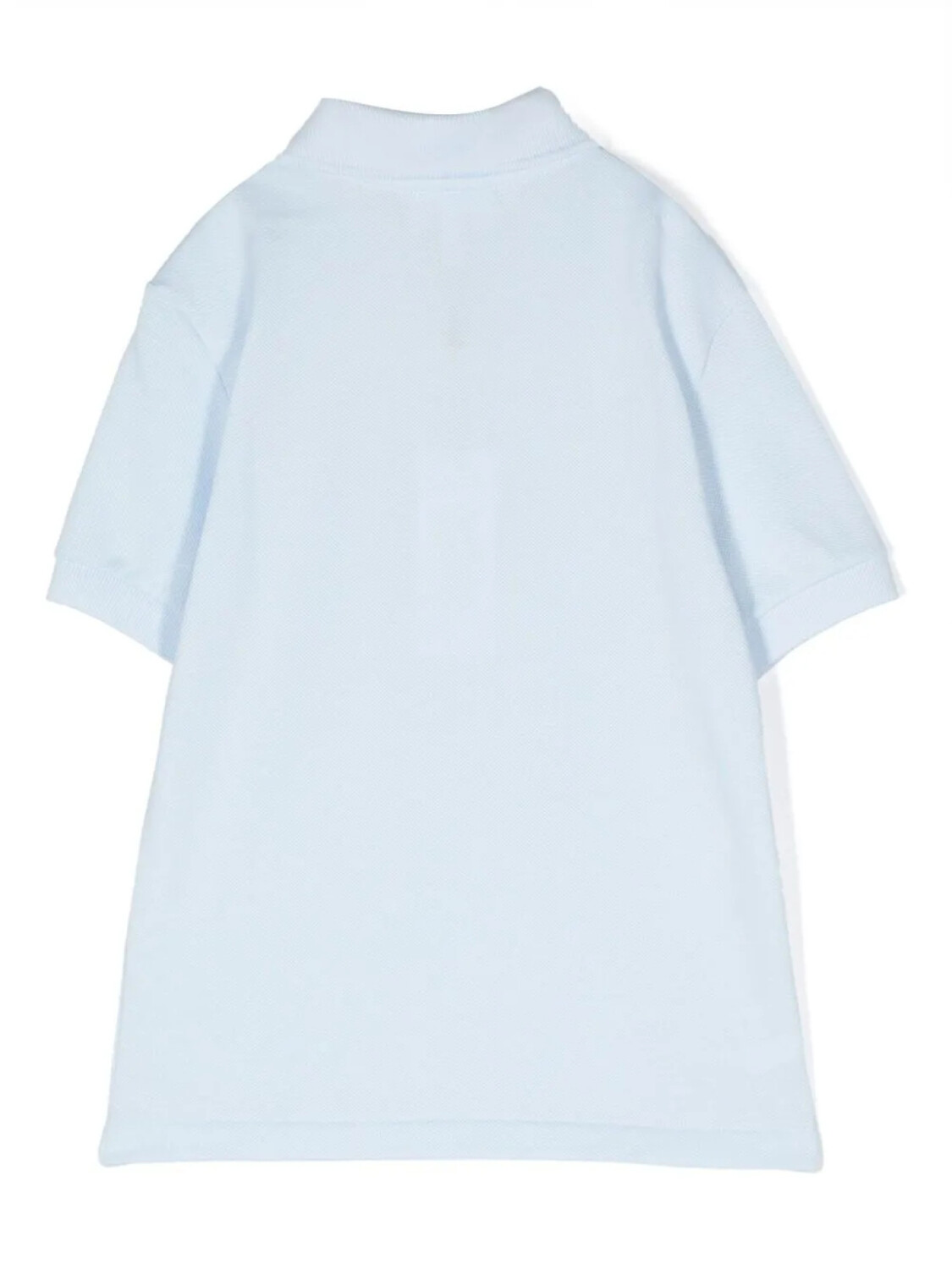 Голубой, хлопок, ткань пике, вышитый логотип на груди, воротник поло, манжеты в рубчик, застежка на пуговицах спереди, короткие рукава и прямой подол.