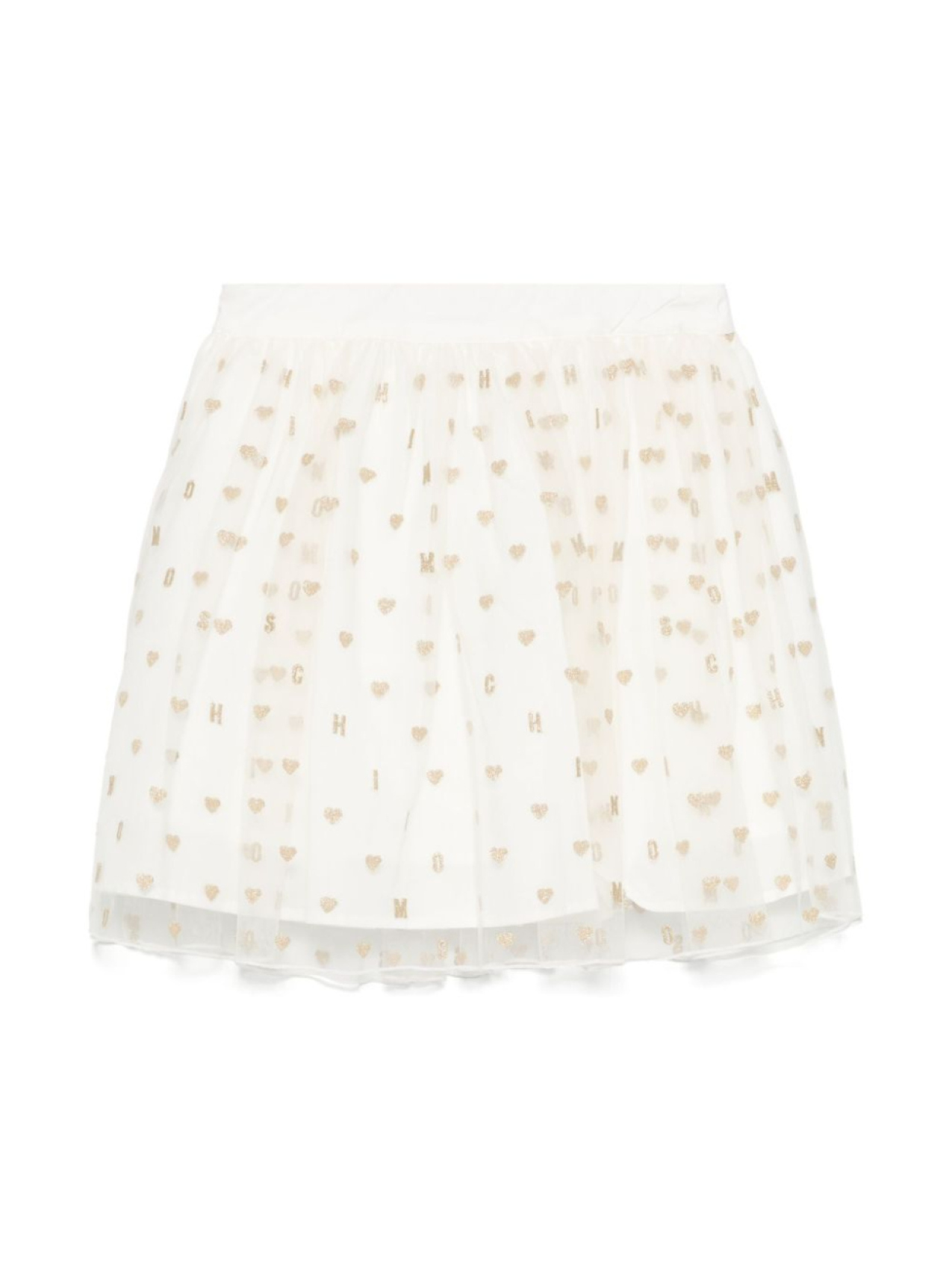 Юбка Moschino Kids с сердечками и жаккардом, белый