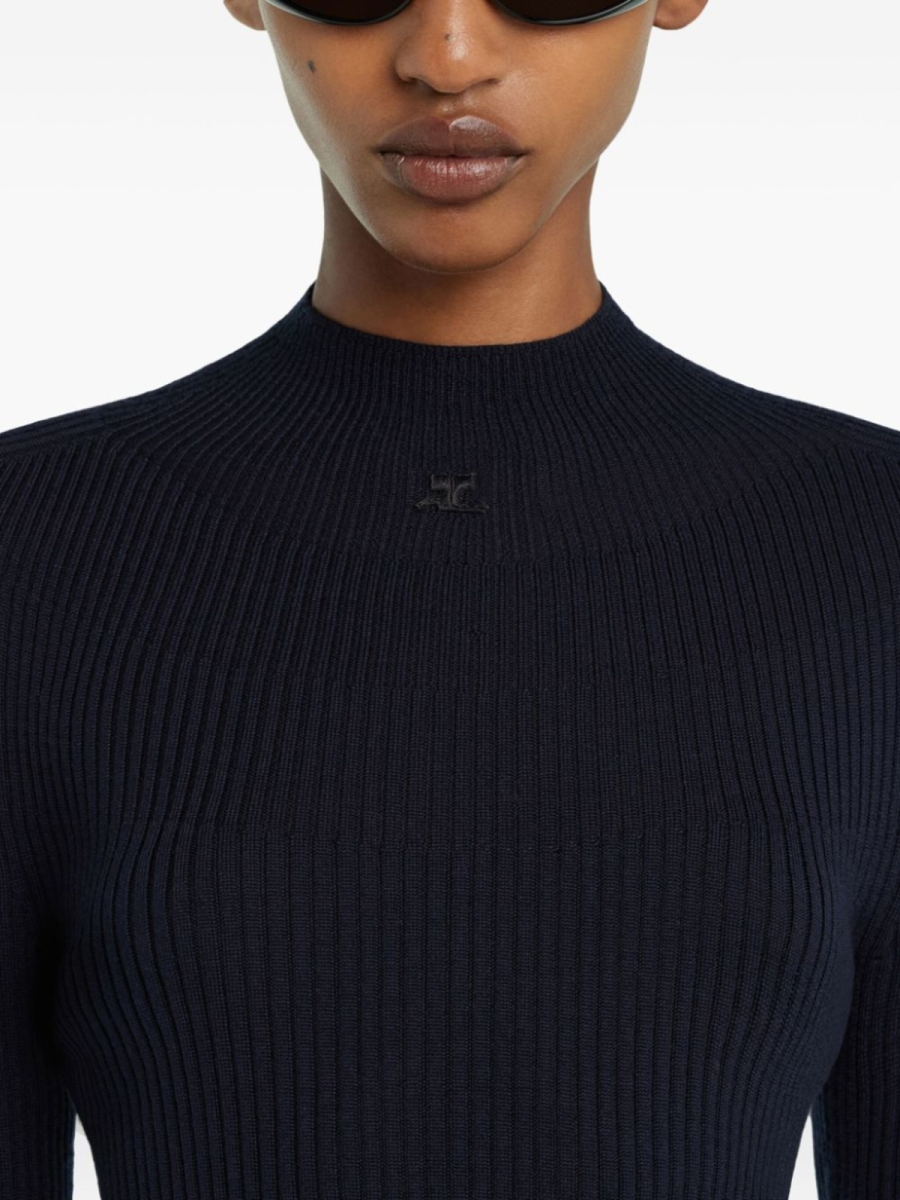Courrèges джемпер в рубчик с высоким воротником, синий