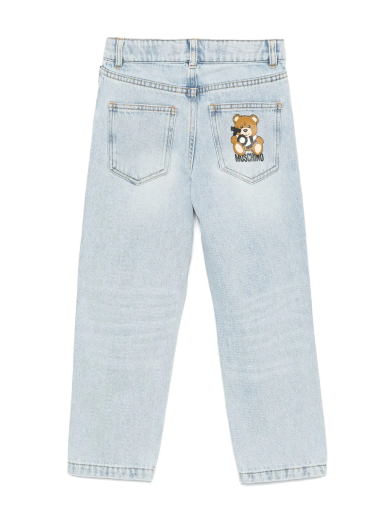 Moschino Kids джинсы Teddy Bear с эффектом потертости, синий