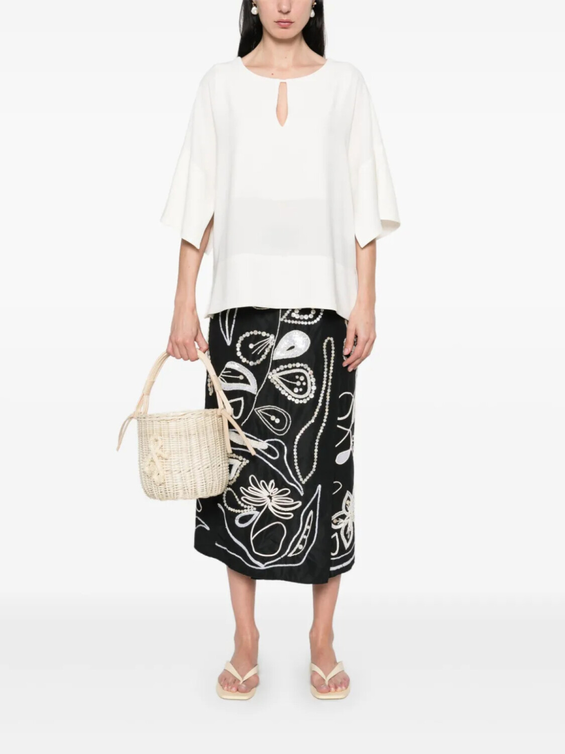 Юбка миди из тафты с вышивкой Forte Forte, черный