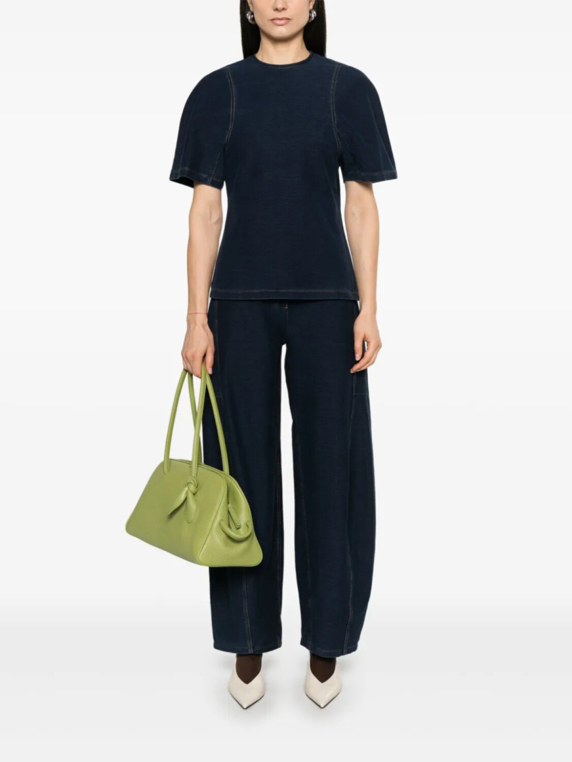 Футболка из денима Tibi с усадкой, синий 24 453₽