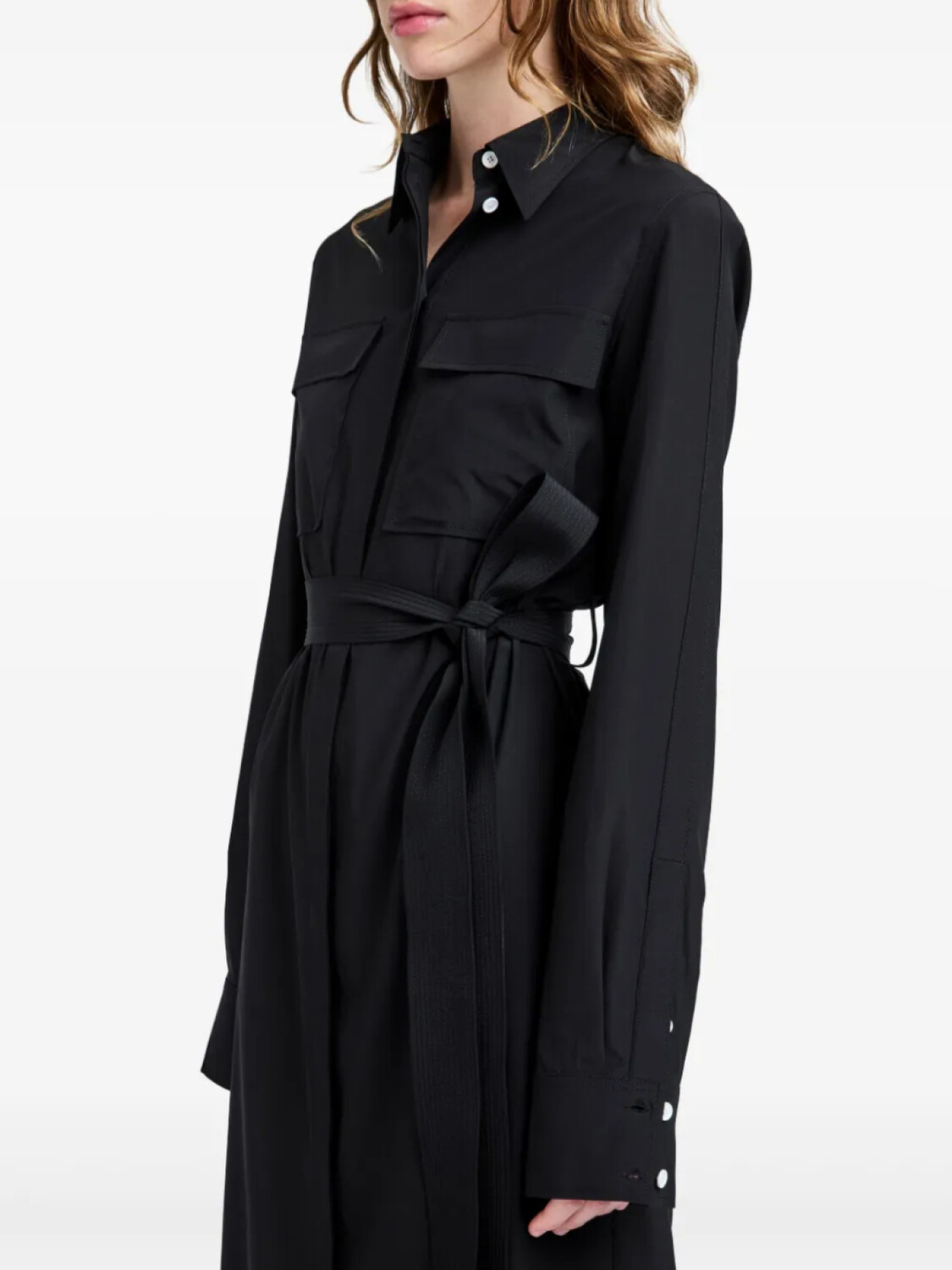 Черная застежка на пуговицы спереди, завязывающиеся на пуговицы манжеты, прямой воротник