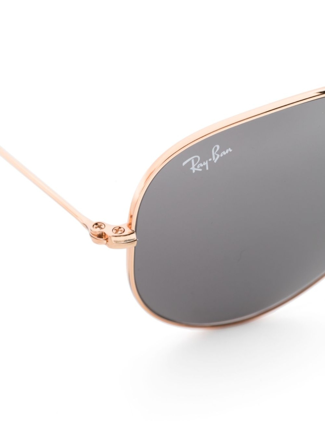 Золотистый, металл, оправа Ray-Ban Aviator, серые линзы, двойной мост, носоупоры, прямые дужки и дужки с закругленными концами. В комплект входит защитный чехол для очков.