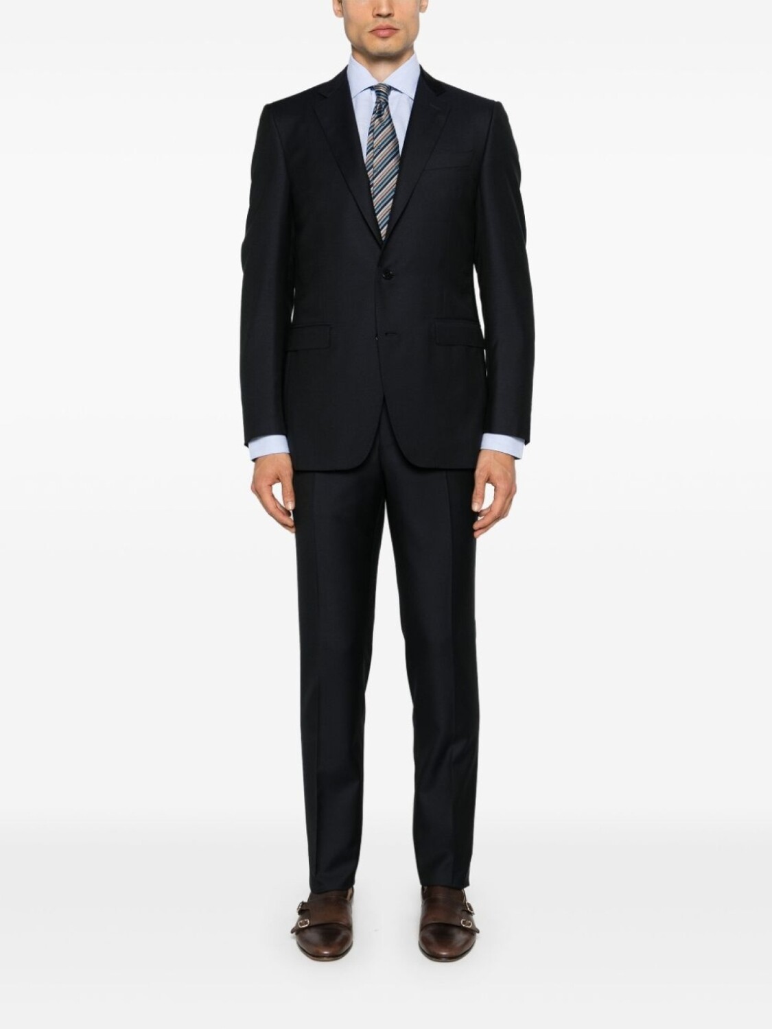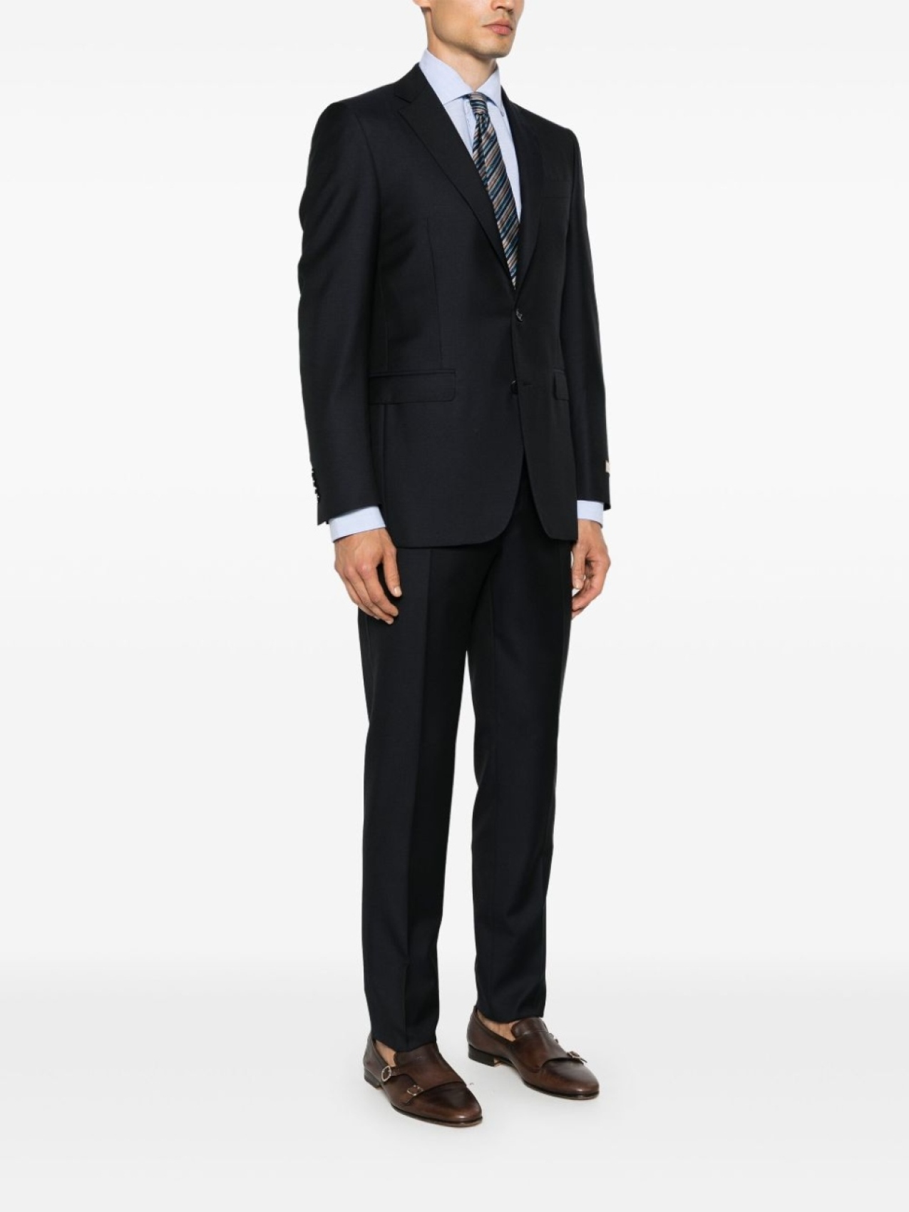Подробнее о товаре: • темно-синий • шерсть • зазубренные лацканы • подплечники • прорезной карман на груди • длинные рукава с имитацией пуговиц на манжетах • логотип на манжете • защипы • два кармана с клапанами по бокам • две боковые шлицы сзади • внутренние прорезные карманы • цельная подкладка • прямой подол • петли для ремня • два прорезных кармана по бокам • стрелки • длина в пол • два прорезных кармана на пуговицах сзади • узкий крой • потайная застежка на молнии и пуговицах