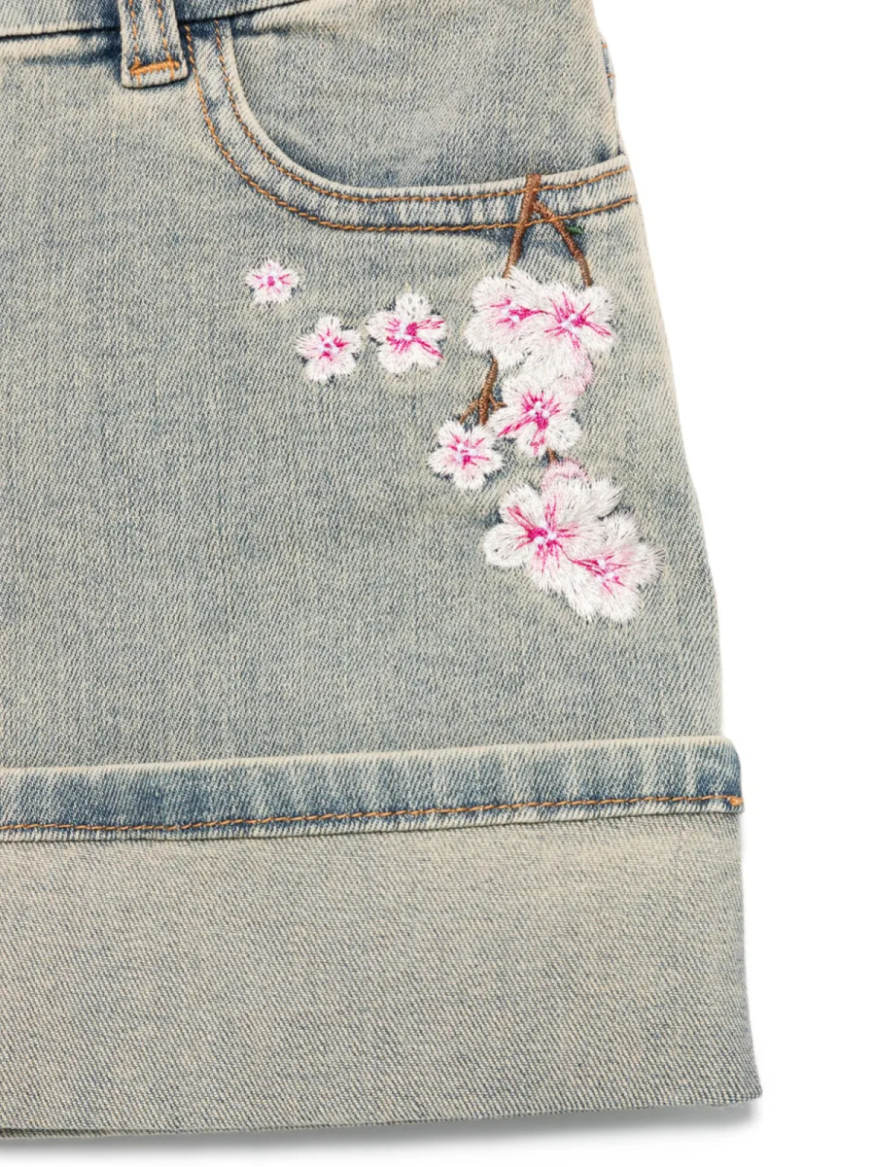 Monnalisa джинсовая юбка с цветочной вышивкой, синий