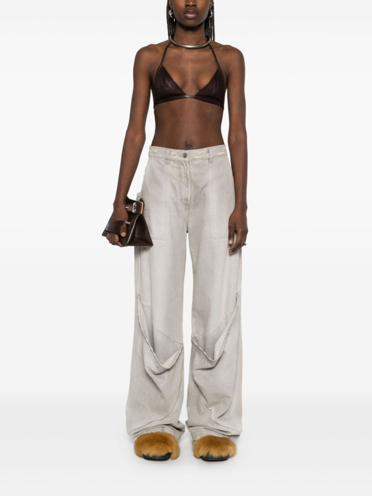 Кожаный бюстгальтер-топ Rick Owens, коричневый 28 147₽