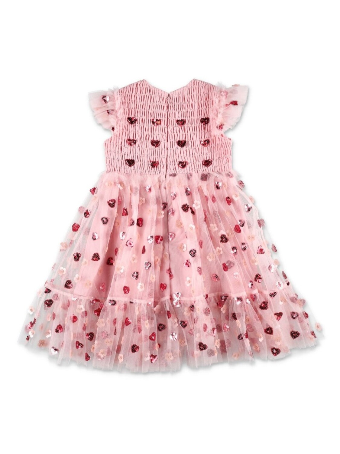 Розовый, потайная застежка на молнии сзади, вставки с оборками, украшение из пайеток, верхний слой из тюля