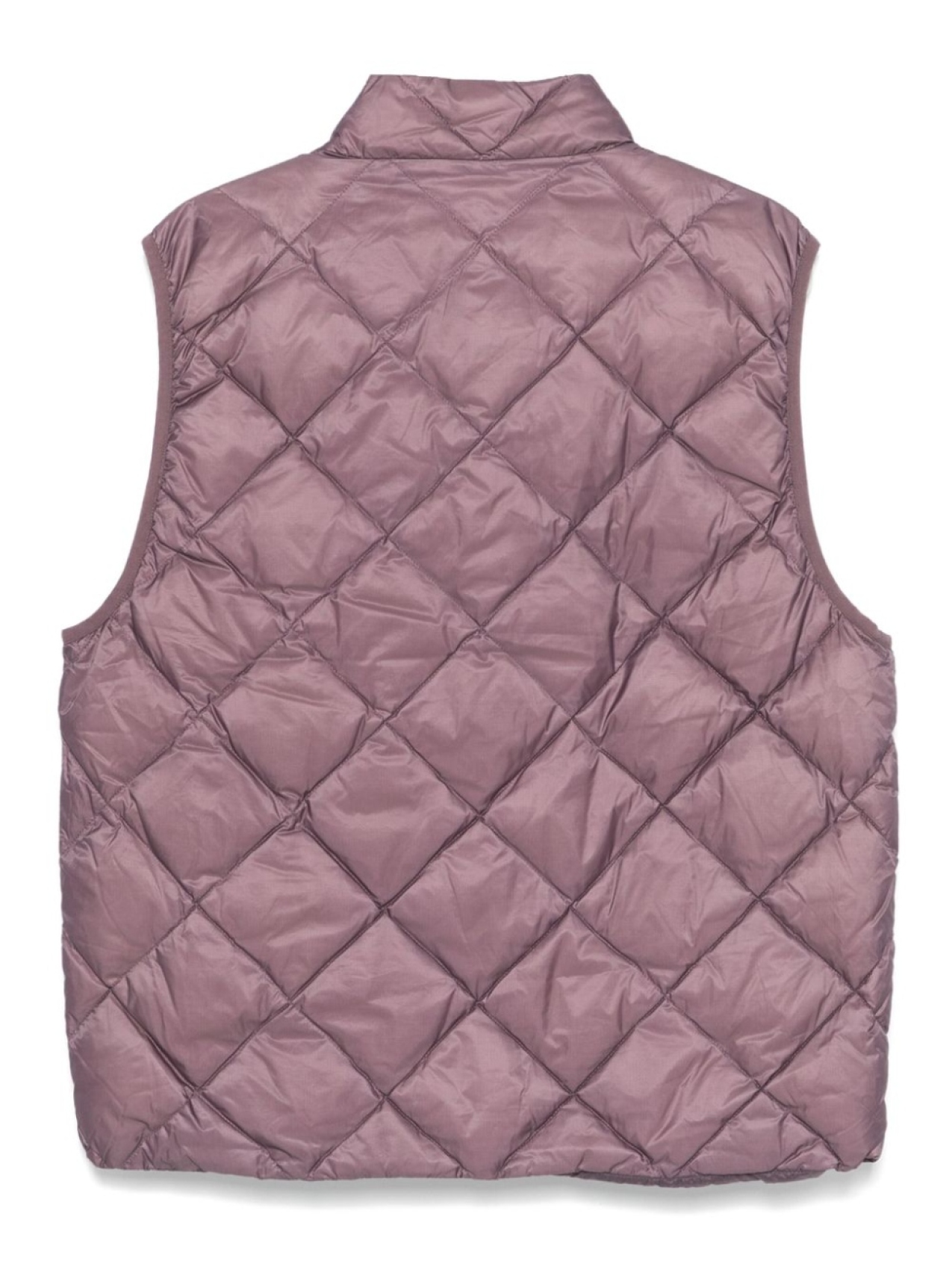 Фиолетовый, наполнитель из смеси пуха и пера, дутый материал, потайная молния спереди, стеганная модель, водонепроницаемая модель, ветронепроницаемый материал, высокий воротник, без рукавов, два накладных кармана по бокам, подол с кулиской