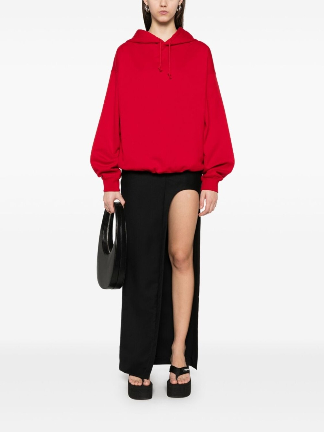 Красный, два прорезных кармана по бокам, ребристые манжеты и подол, спущенное плечо. При покупке этой вещи унисекс имейте в виду, что она имеет стандартные мужские размеры.