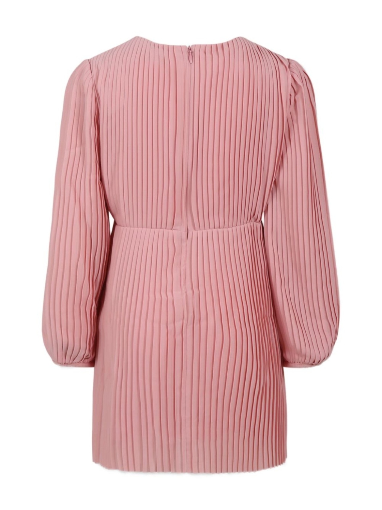 Розовая потайная застежка-молния сзади вышитый логотип на груди круглый вырез горловины рукава-фонарики