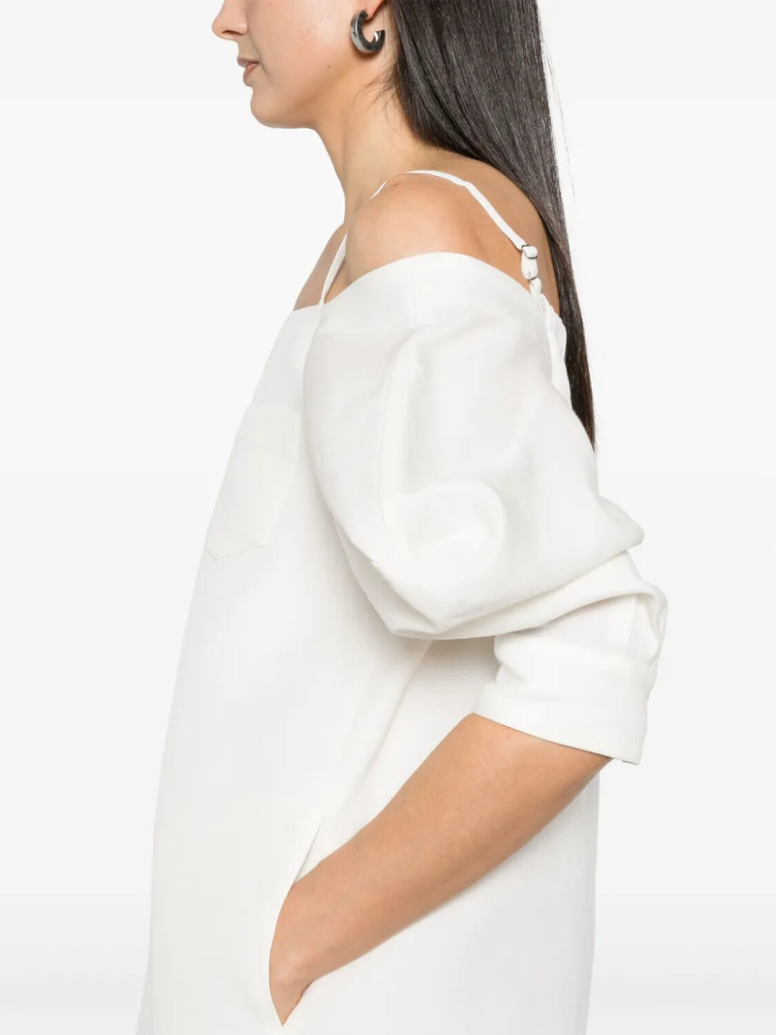 Sacai мини-платье с открытыми плечами, белый 96 637₽