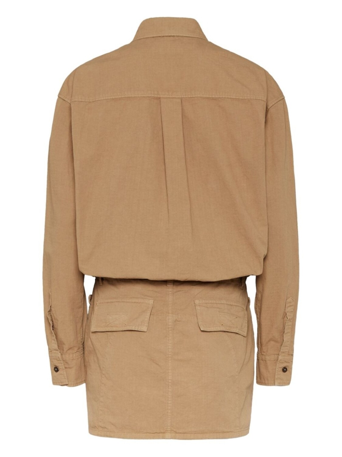 Песочно-бежевый, рипстоп, логотип спереди, застежка на пуговицах спереди, классический воротник, два нагрудных кармана с клапанами, длинные рукава, два вшитых кармана по бокам, два кармана с клапанами сзади