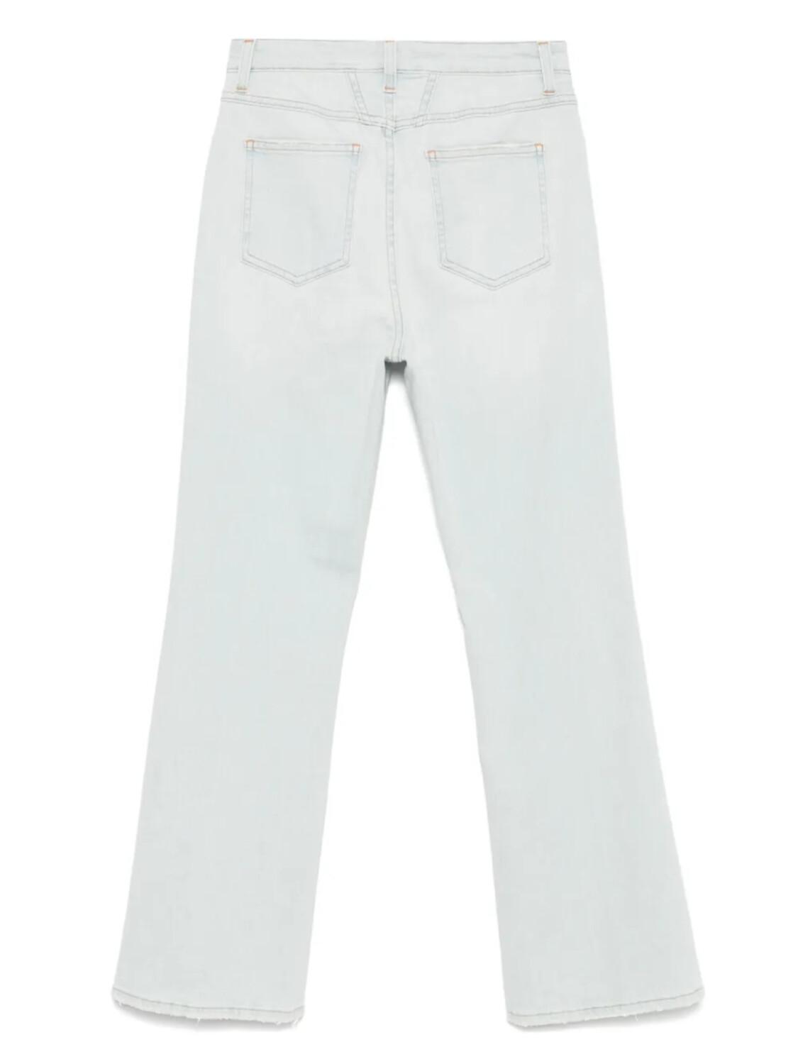 Светло-голубая застежка на пуговицы и молнию спереди, шлевки для ремня, классические пять карманов