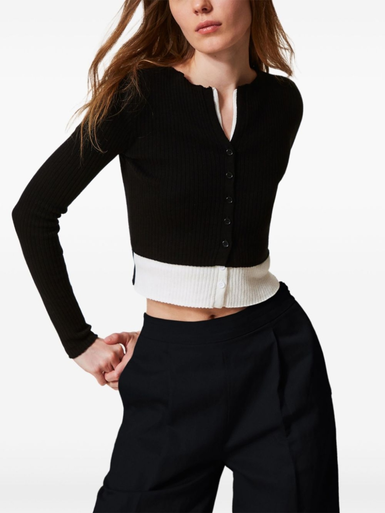 TWINSET кардиган в рубчик, черный
