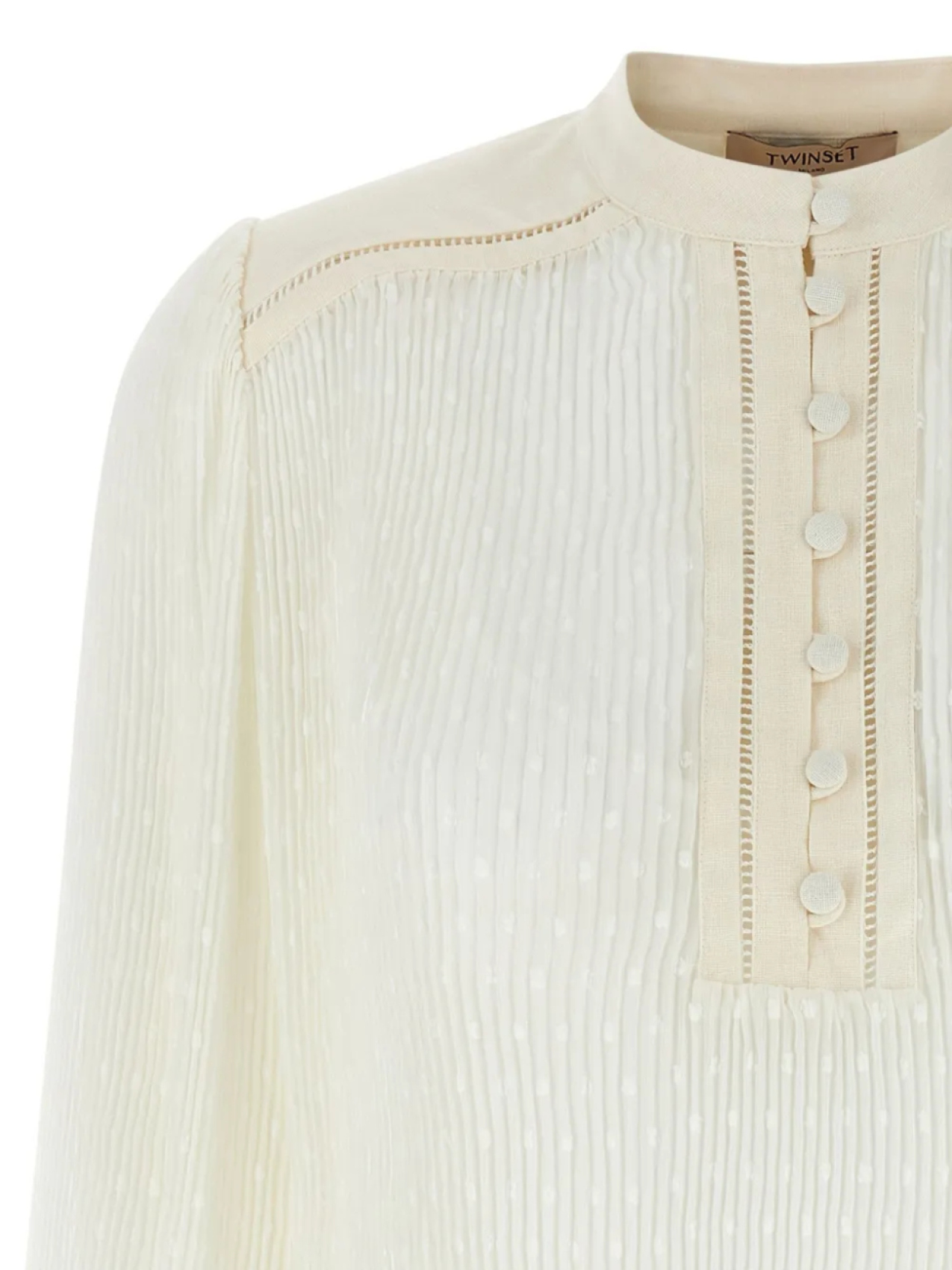 Белый передний воротник-стойка с застежкой на пуговицы, длинные рукава, манжеты на пуговицах