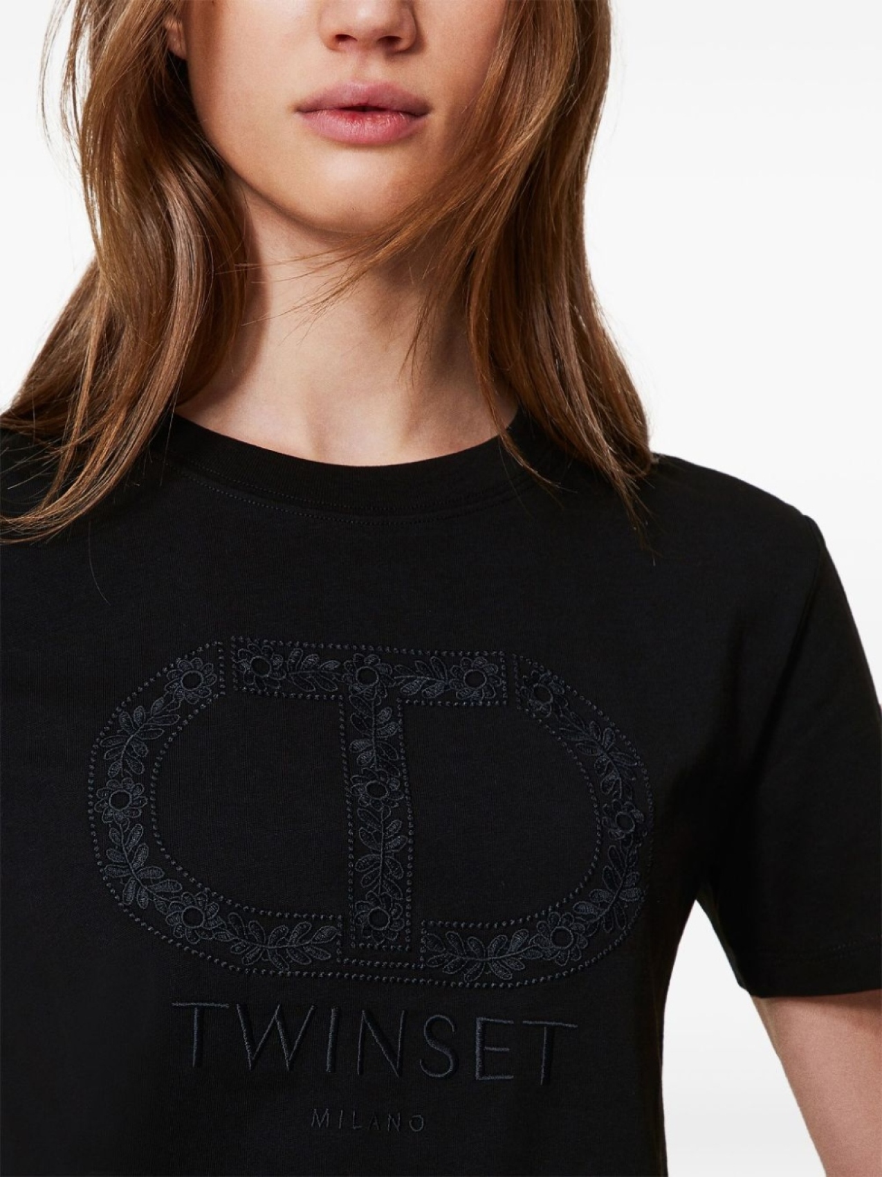 TWINSET футболка с вышитым логотипом Oval T, черный