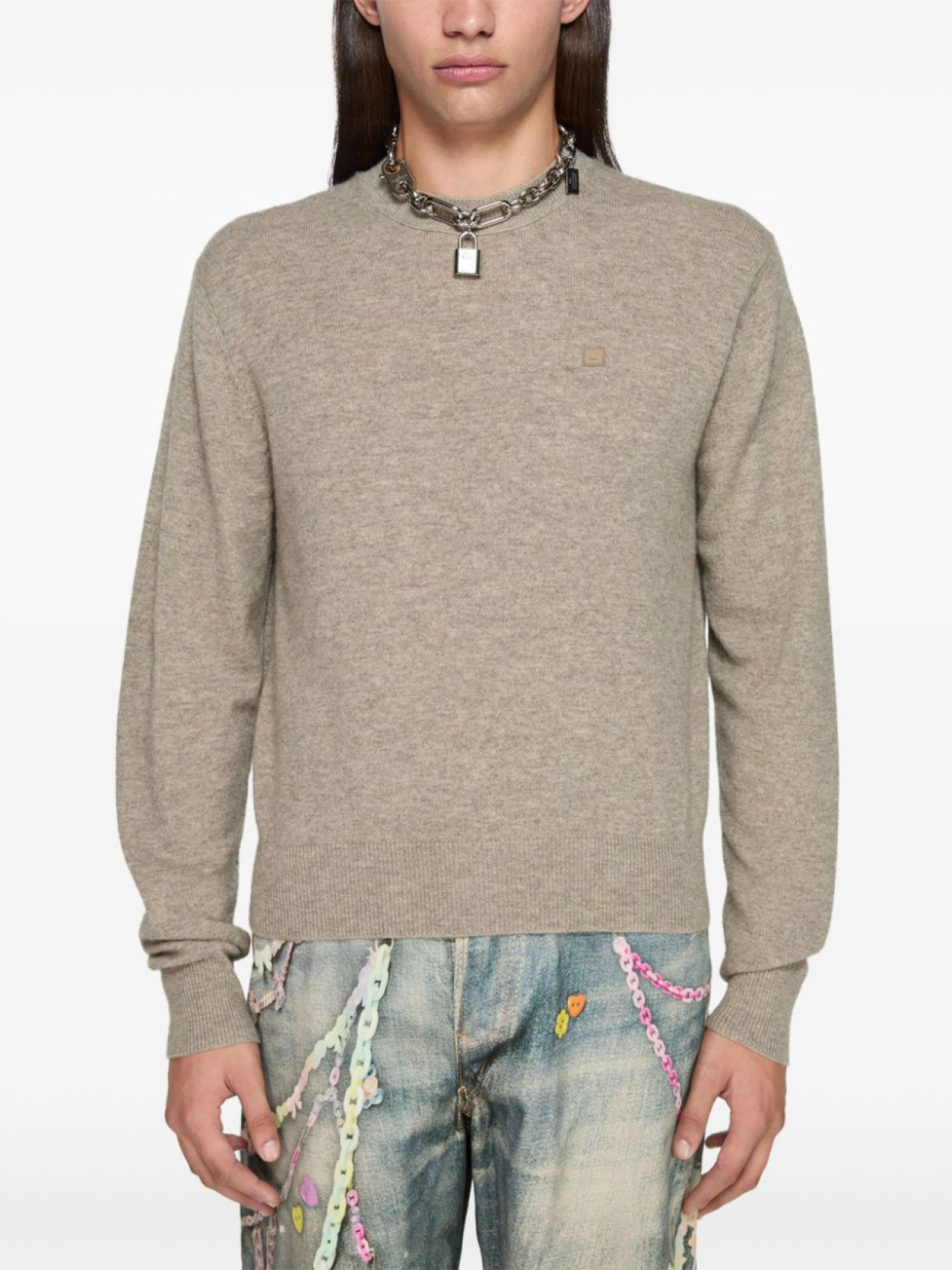 Acne Studios свитер с нашивкой-логотипом, нейтральный цвет