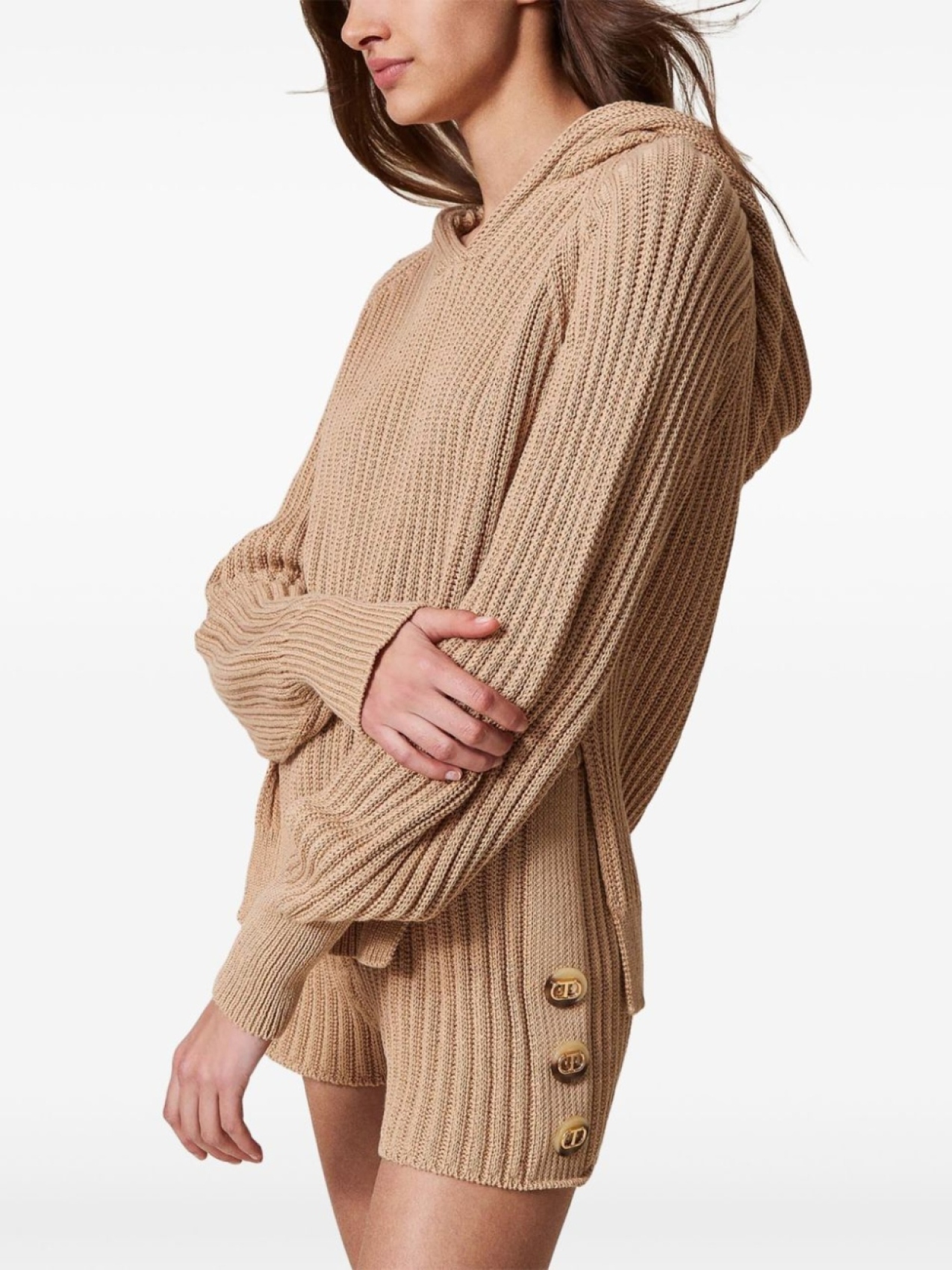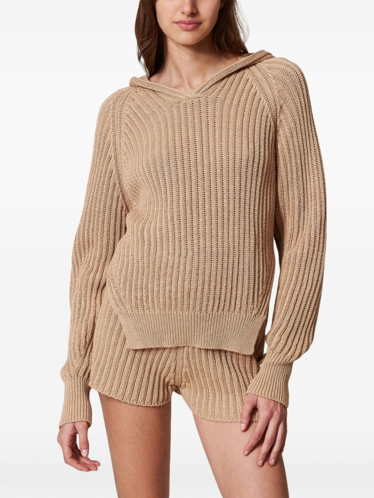 TWINSET свитер в рубчик с капюшоном, коричневый