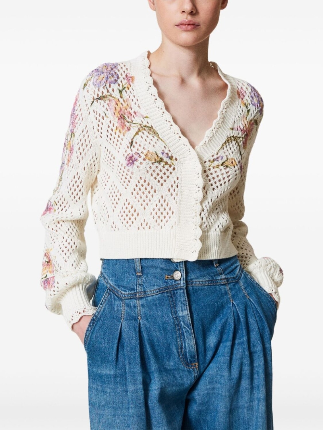 TWINSET кардиган с цветочным принтом, белый