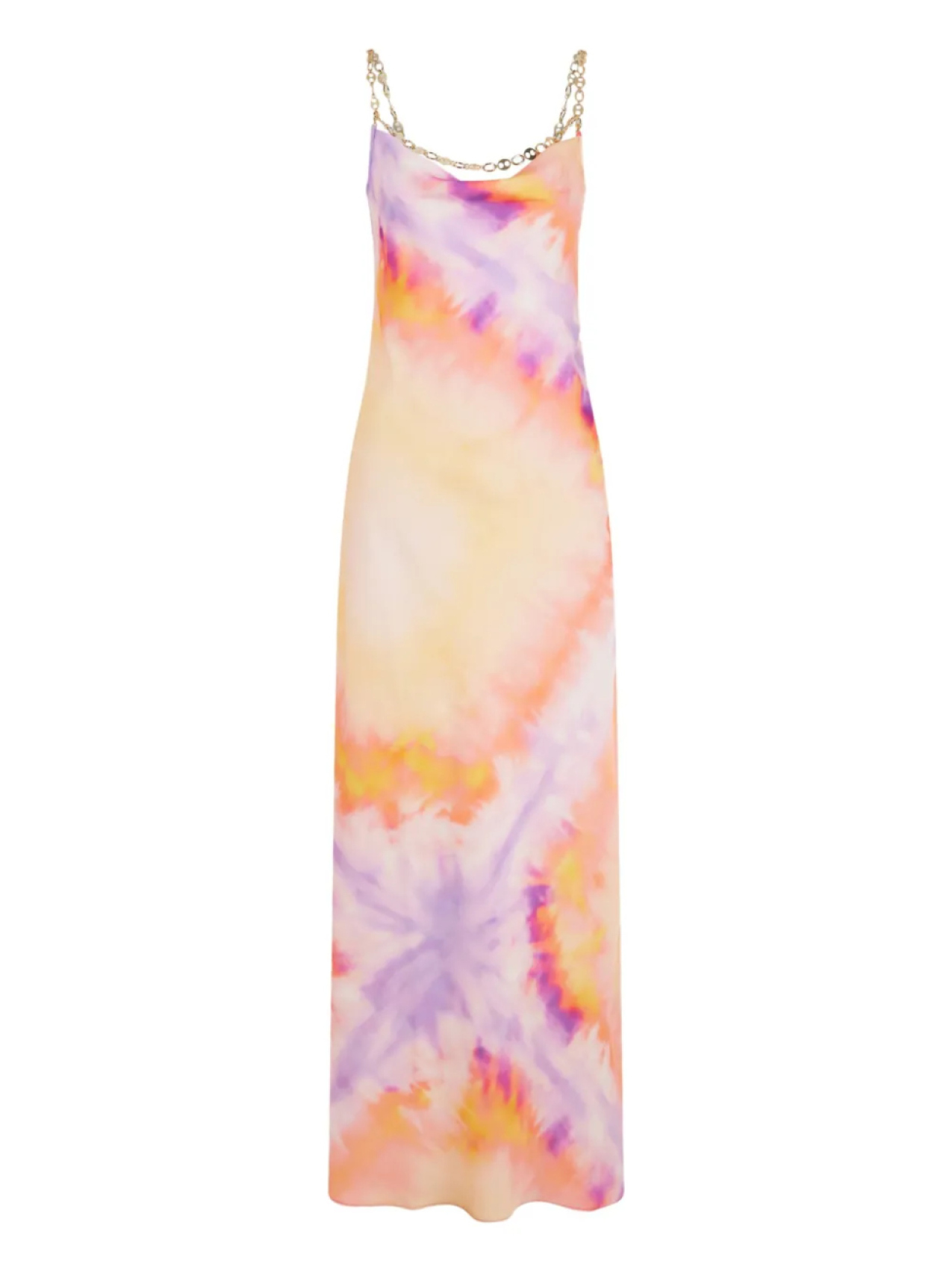 Rabanne атласное платье макси с принтом, оранжевый 57 920₽