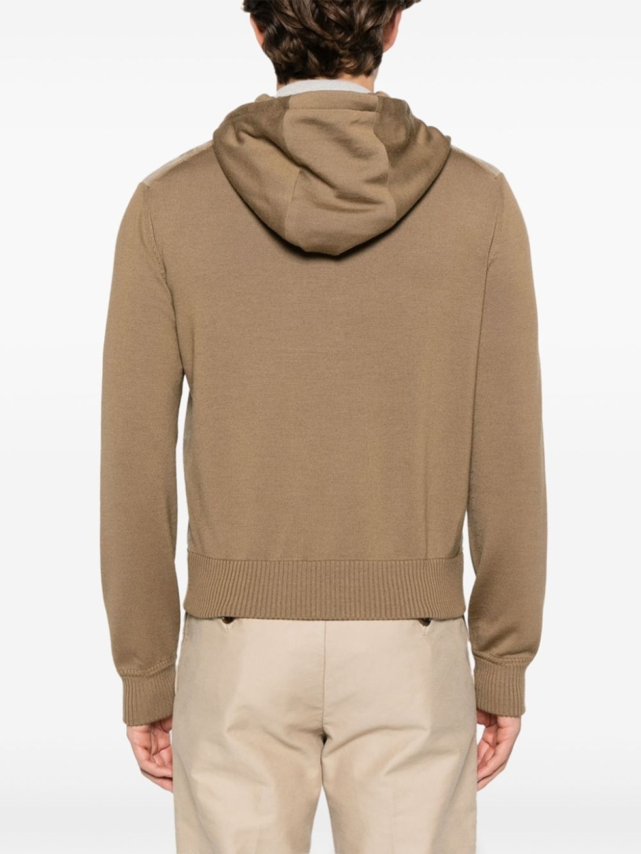 Светло-коричневый спереди застежка-молния капюшон на шнурке два передних застегивающихся на пуговицы прорезных кармана