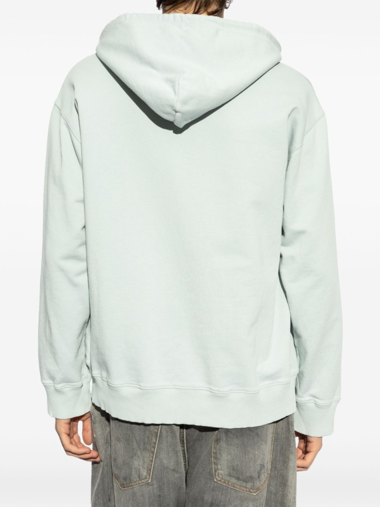 Голубой, капюшон с кулиской, накладной карман спереди, логотип сбоку, приспущенные плечи