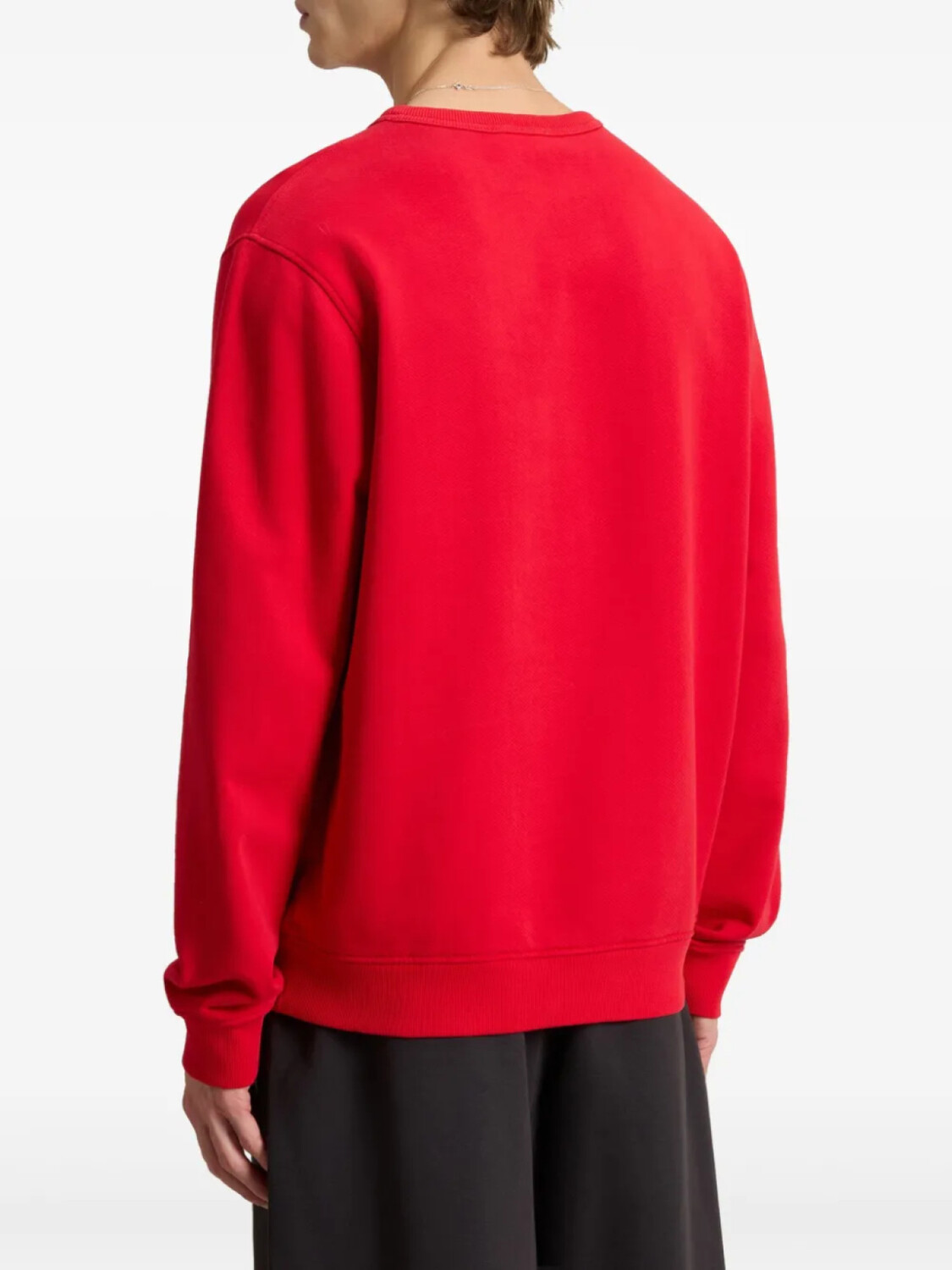 Ярко-красный круглый вырез горловины, длинные рукава, ребристые манжеты и подол