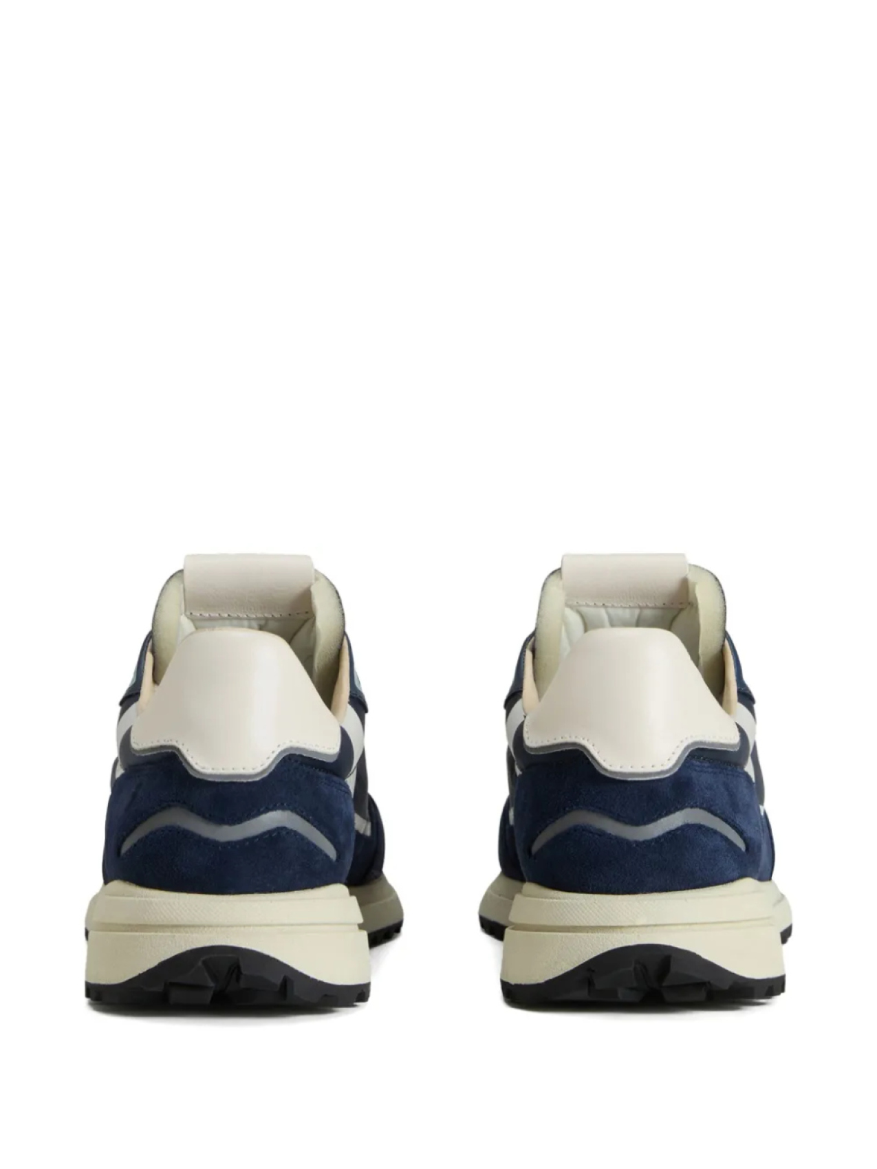 Темно-синяя шнуровка спереди, резиновая подошва, фирменная стелька, контрастный задник