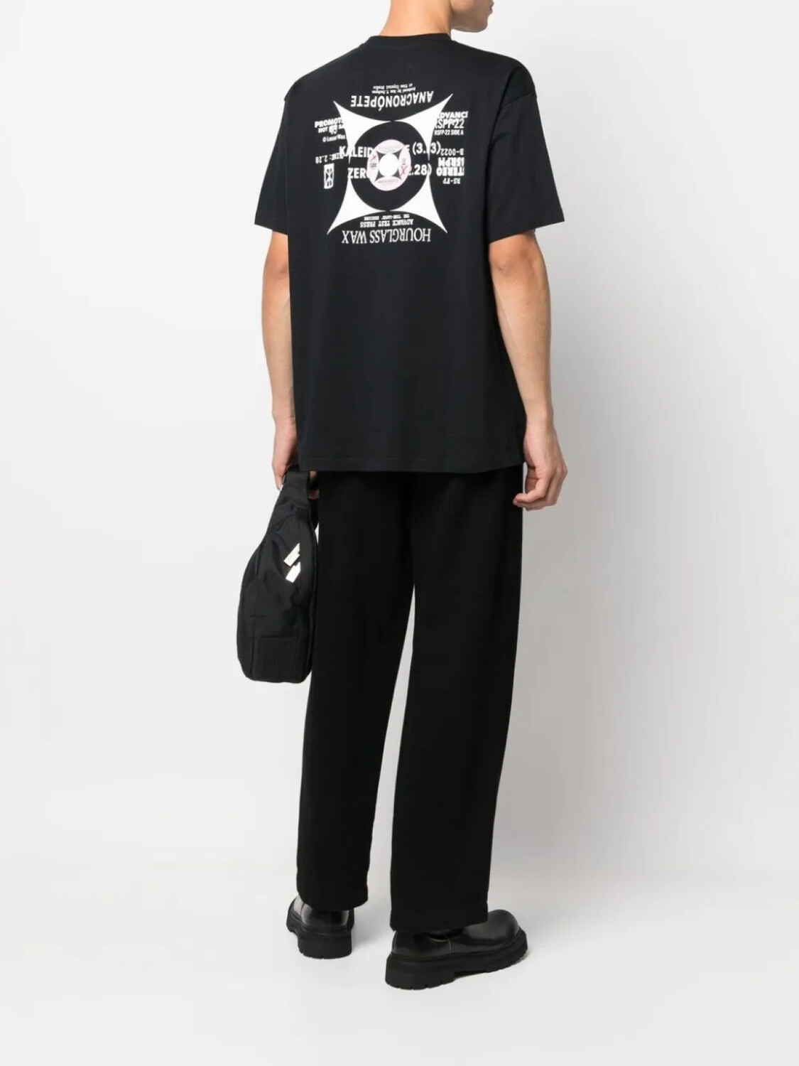 Черный, нашивка с логотипом спереди, круглый вырез, короткие рукава и прямой подол.