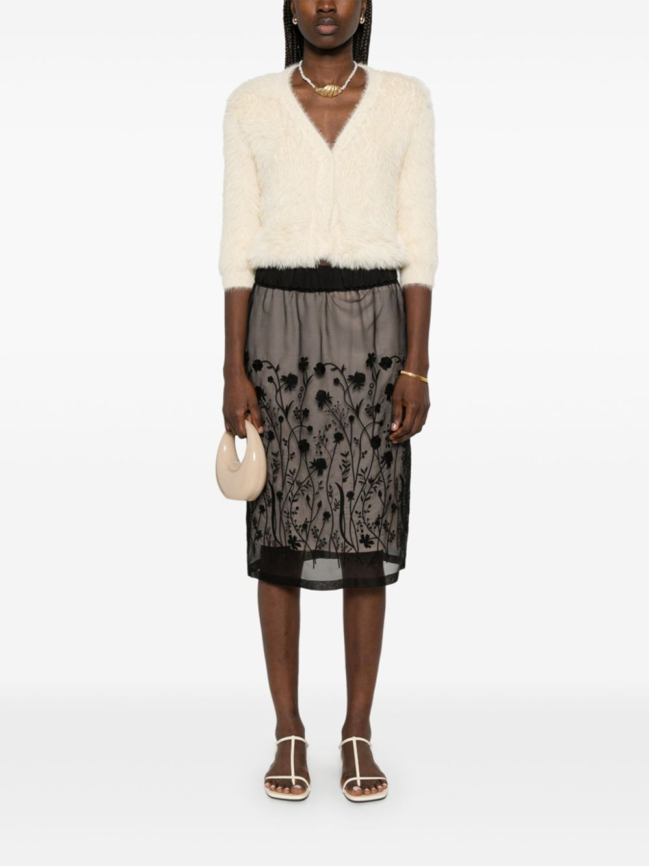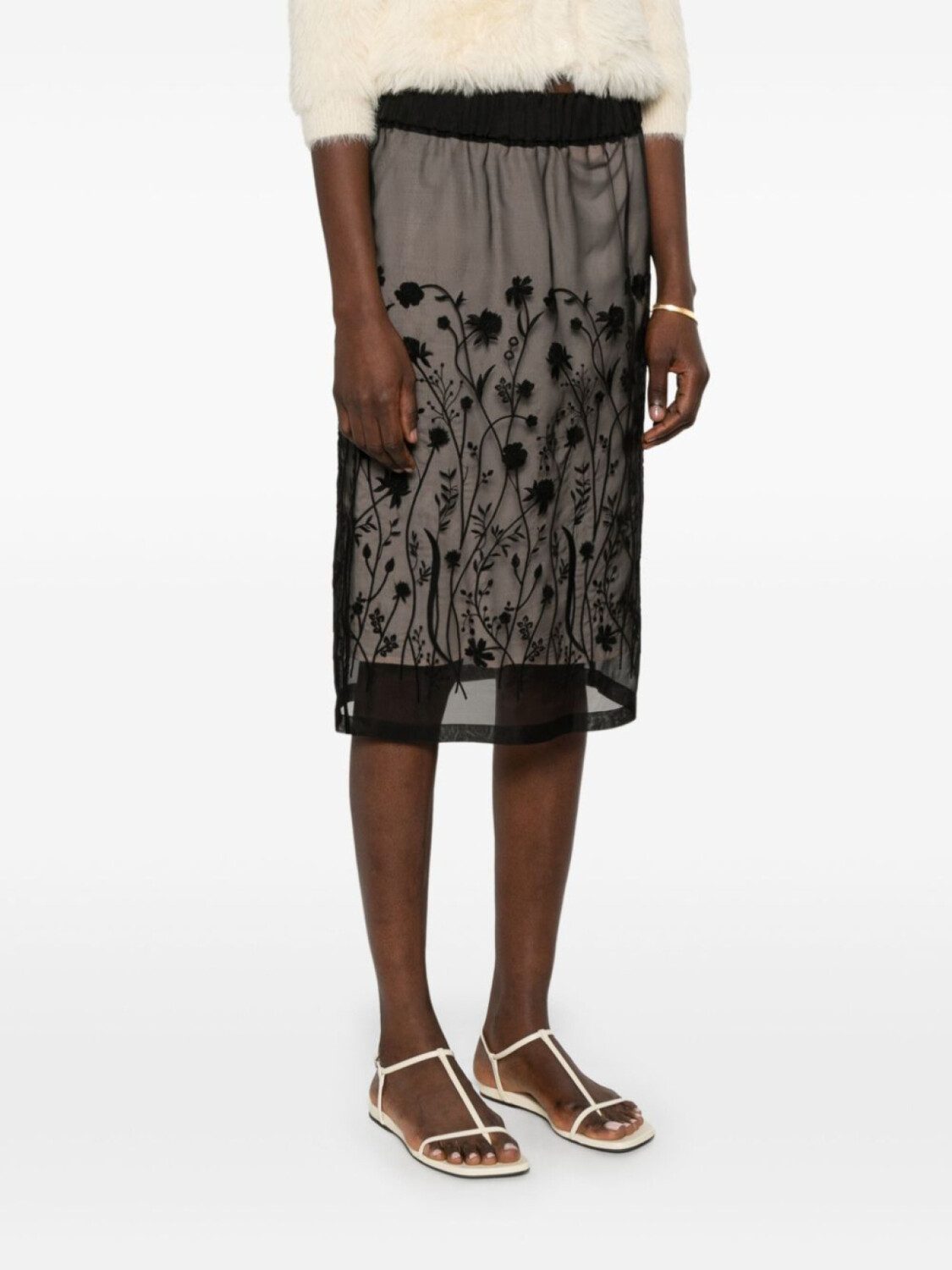 P.A.R.O.S.H. юбка миди с цветочной вышивкой, черный 33 950₽