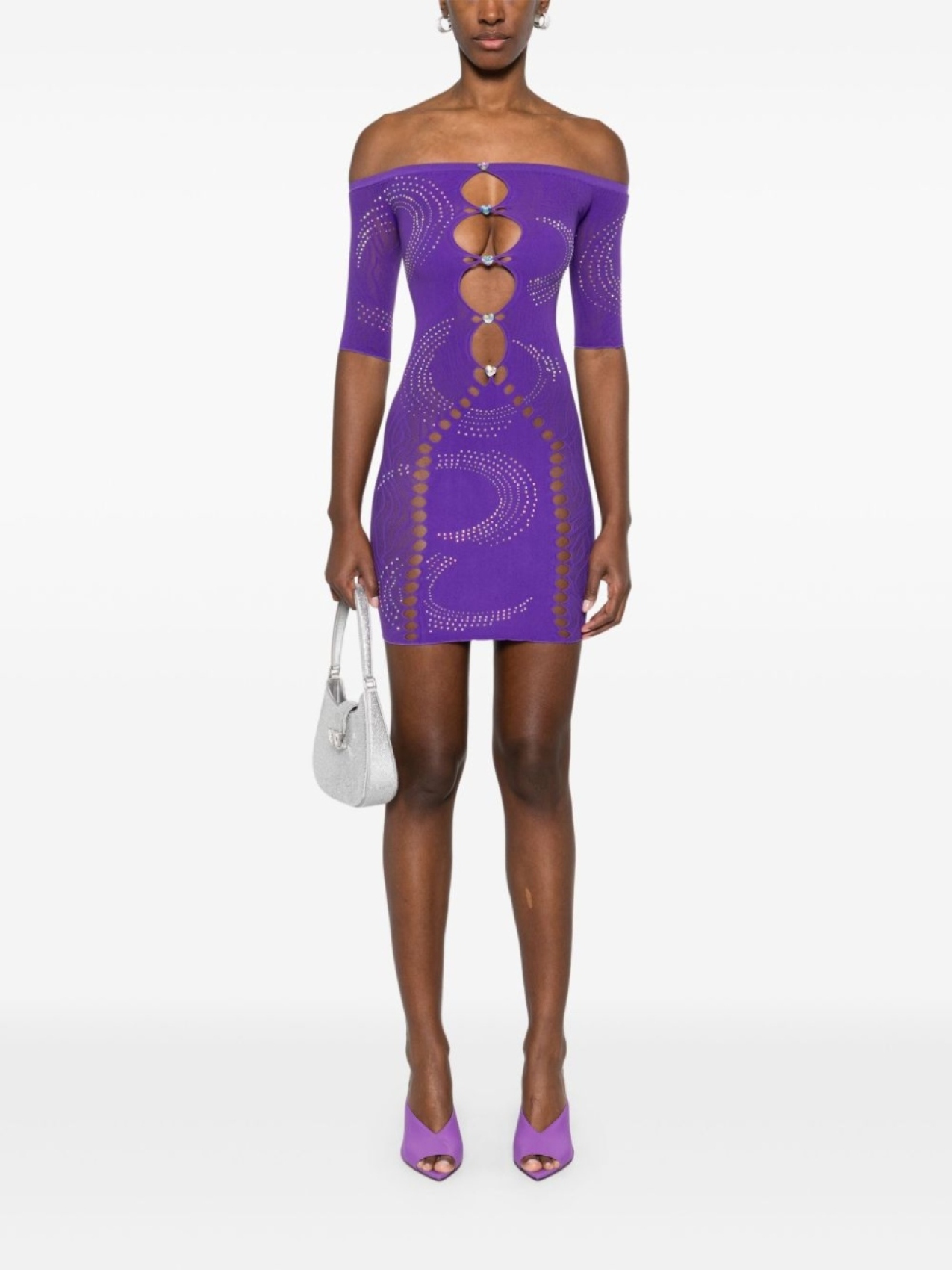 Фиолетовый, кристаллы, вырезные детали, присборенный подол