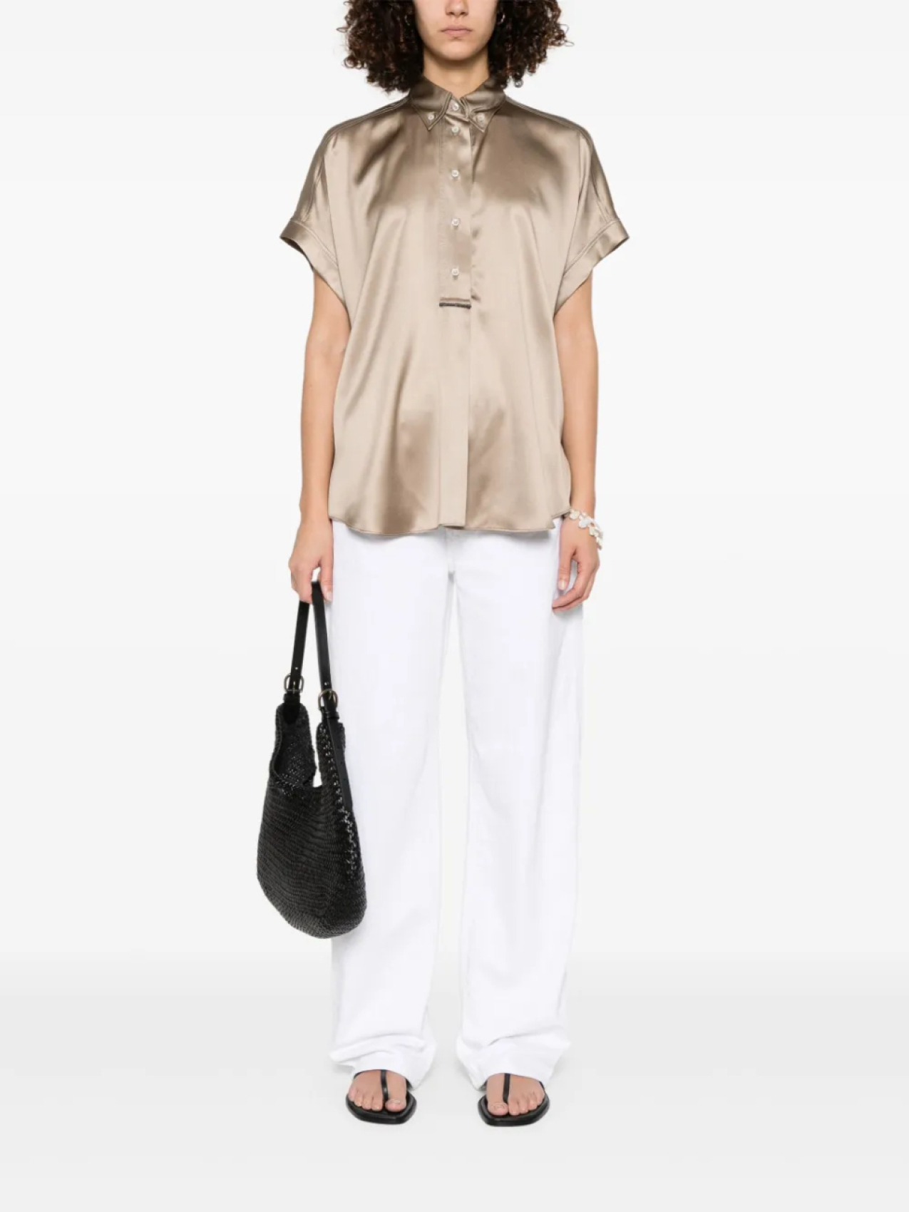 Атласная блузка Brunello Cucinelli, коричневый