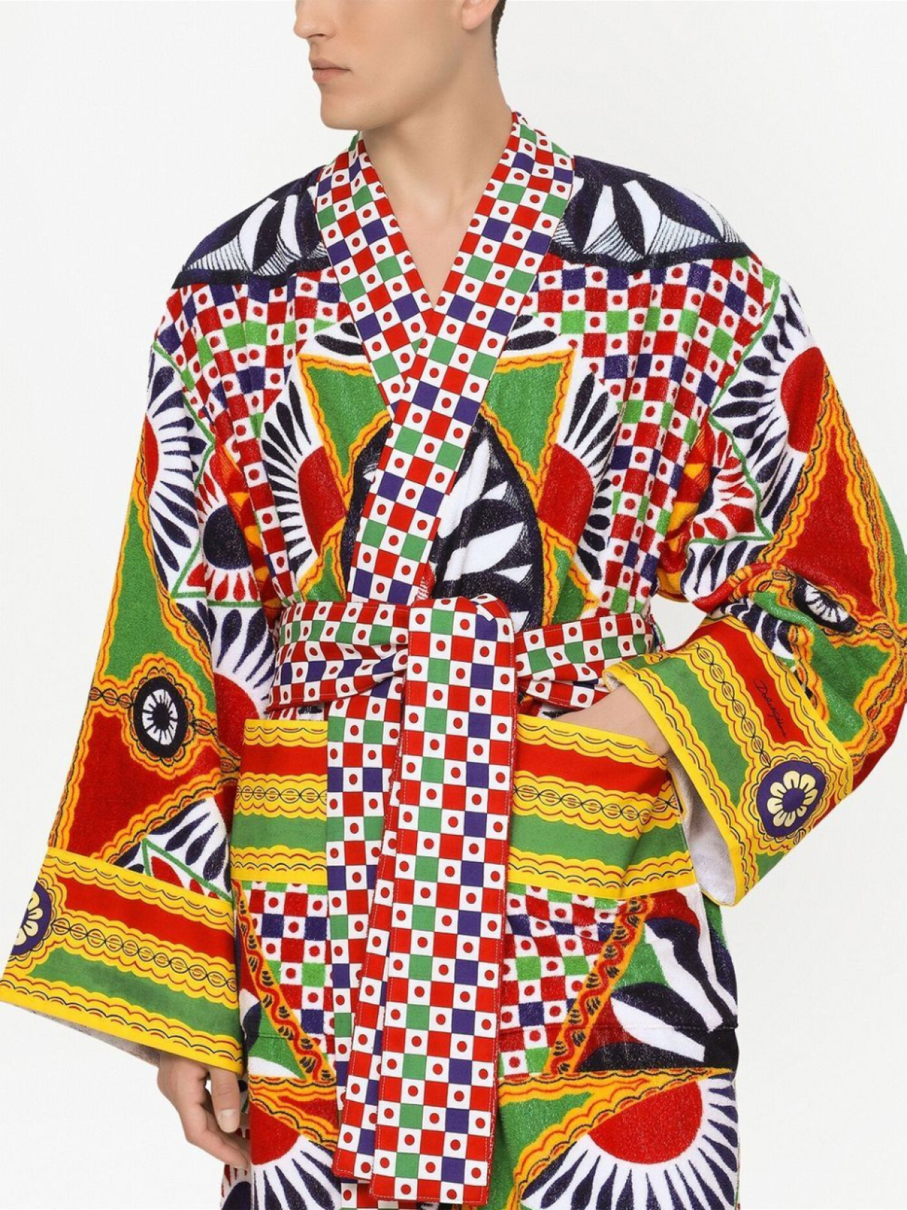 Халат с длинными рукавами и графичным принтом от Dolce & Gabbana (Дольче энд Габбана).