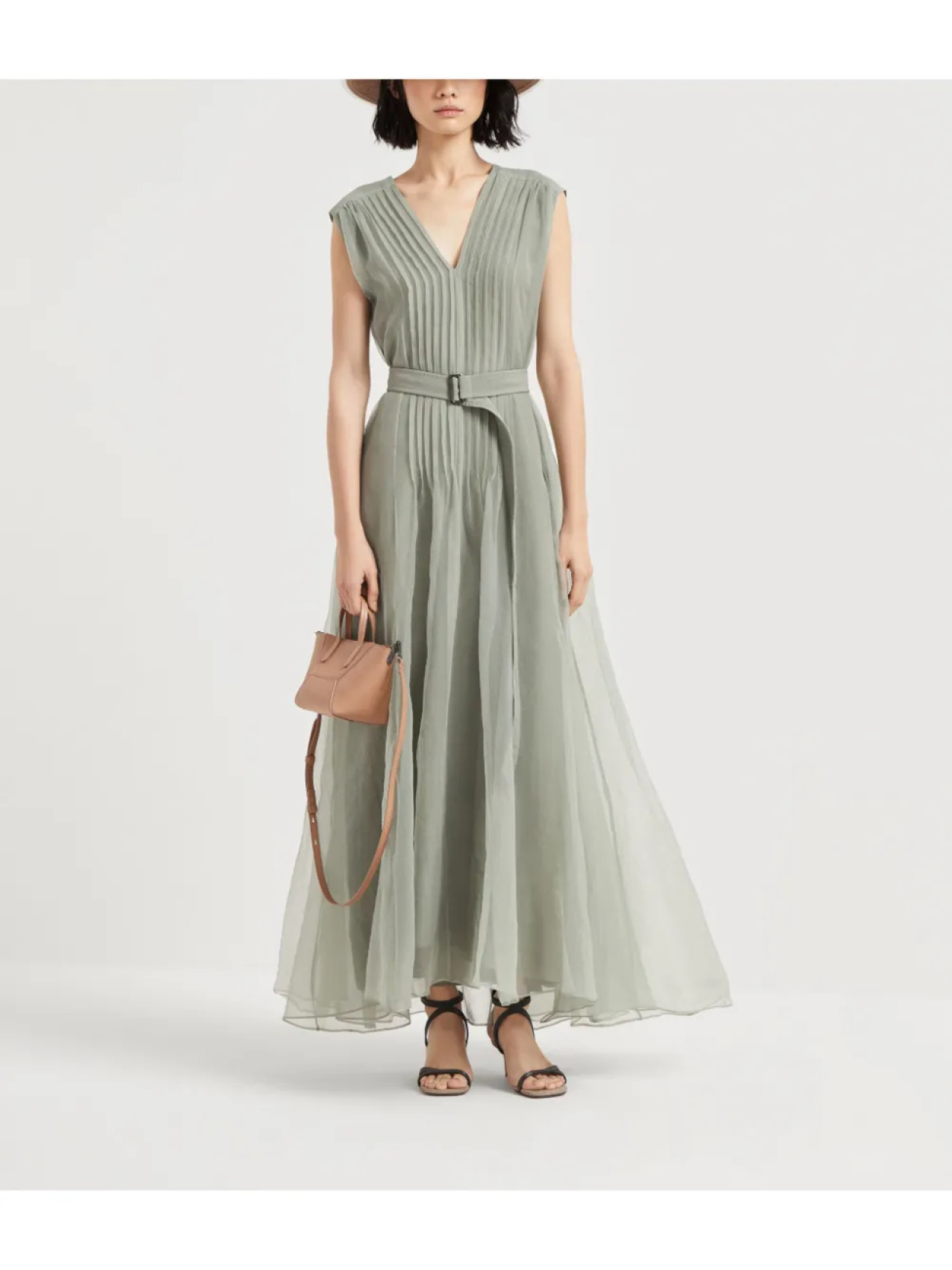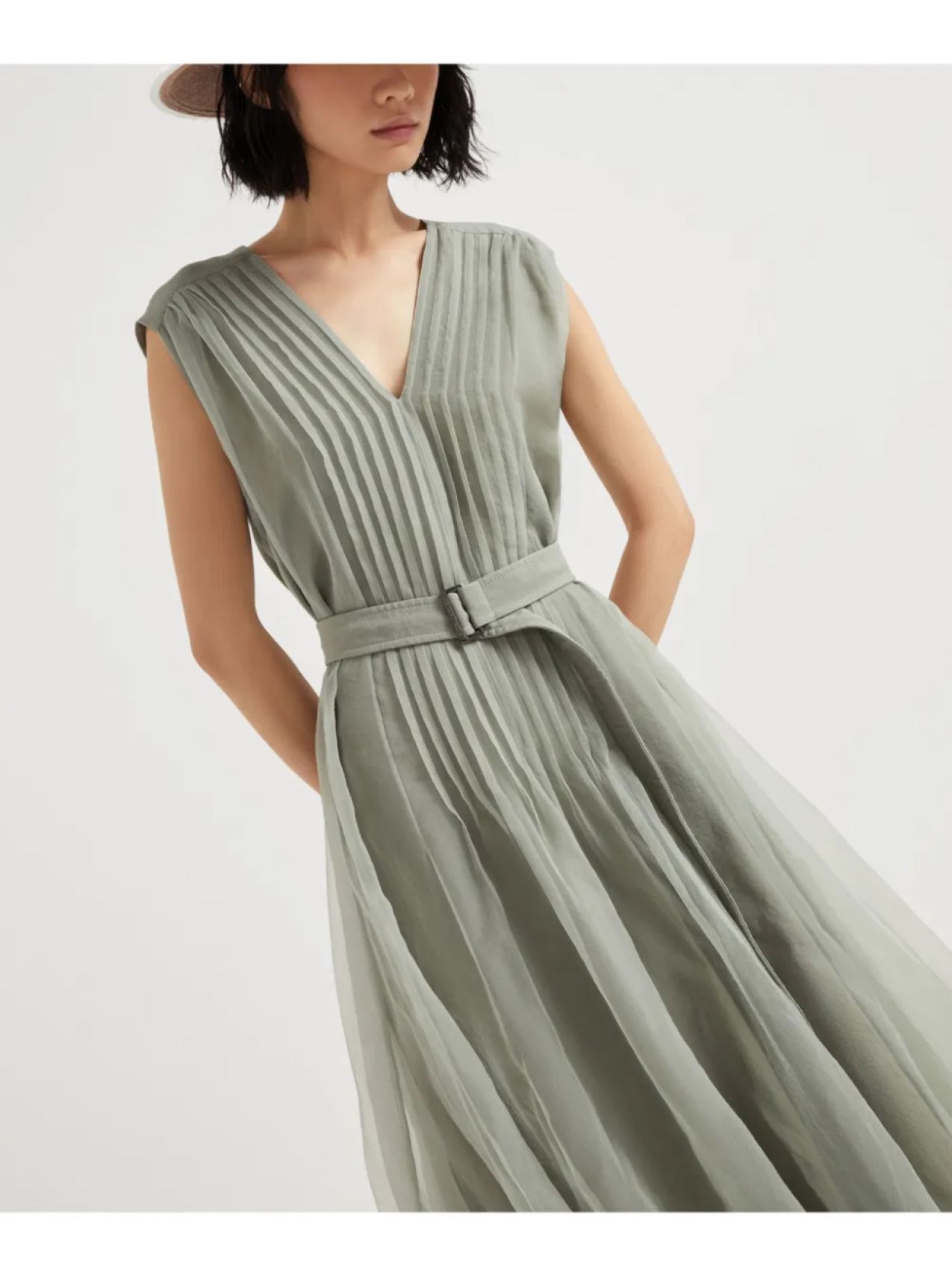 Brunello Cucinelli плиссированное платье с декором Monili, зеленый