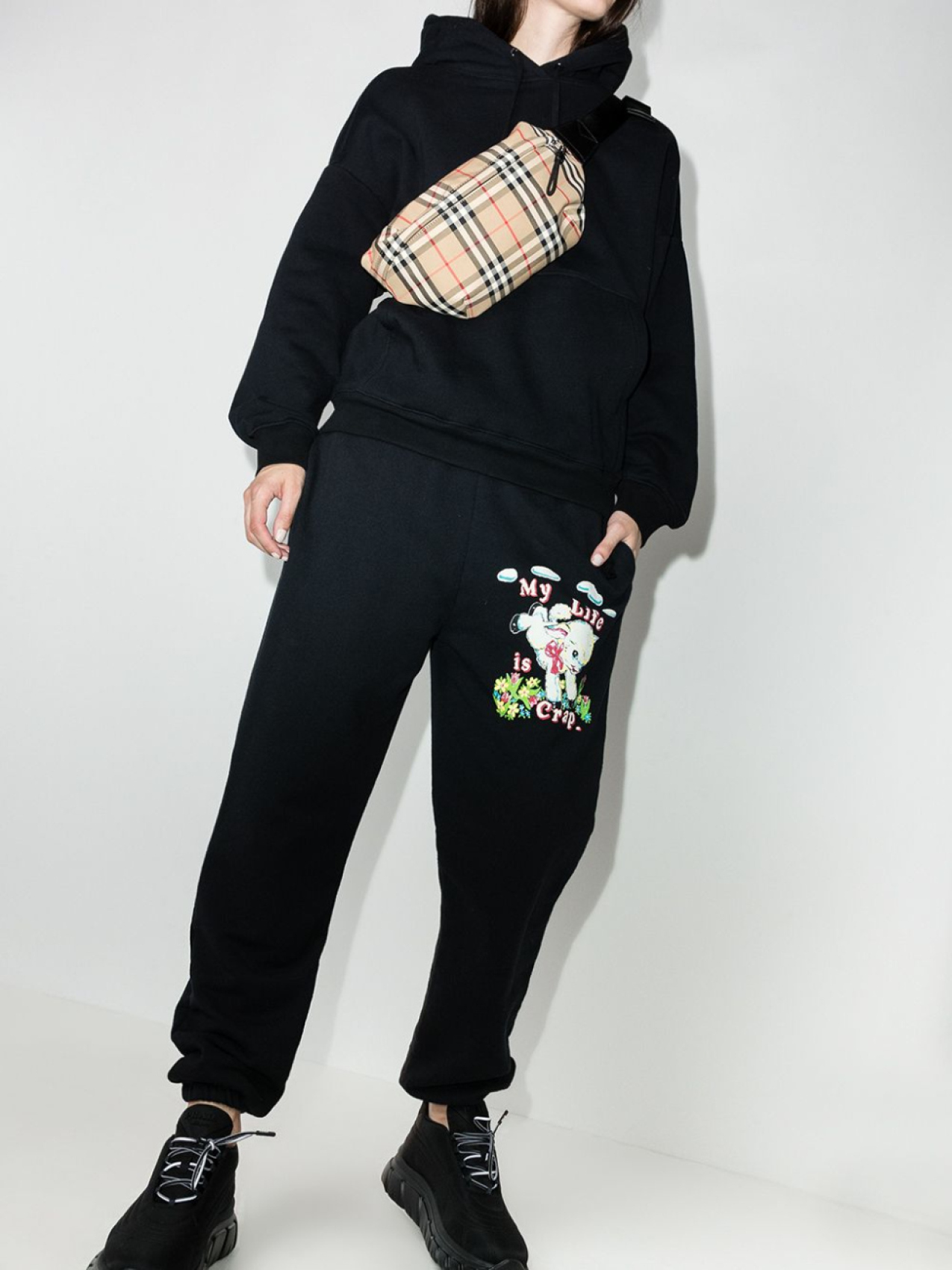 Затягивающийся на шнурок капюшон, длинные рукава, подол в рубчик, манжеты в рубчик и вышитый логотип сбоку. Цвет: черный.