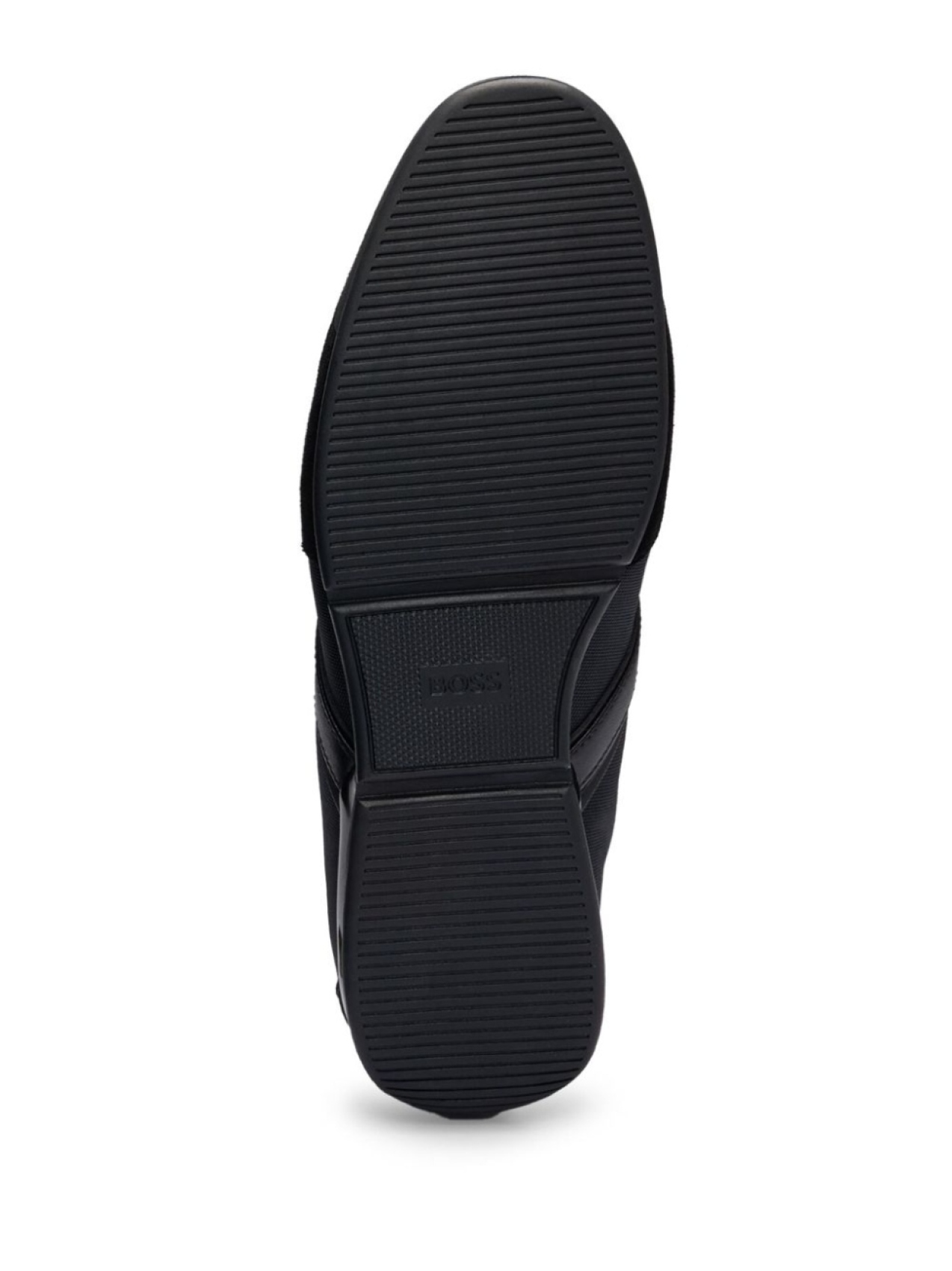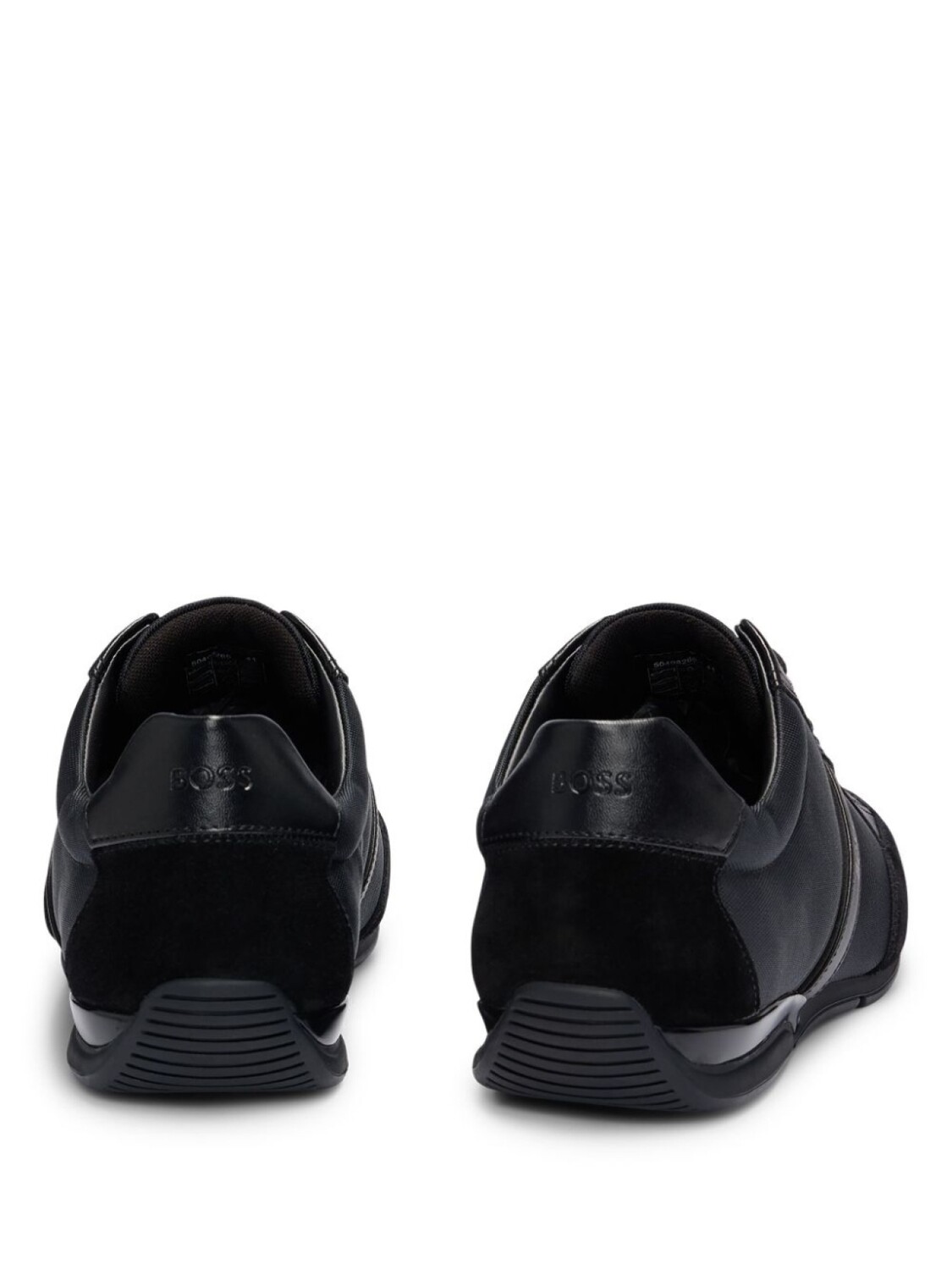 Черный, искусственная кожа, фактурная отделка, дизайн со вставками, замшевые вставки, шнуровка спереди, логотип на пятке, нашивка с логотипом на язычке, логотип сбоку, закругленный носок, стелька с логотипом, плоская резиновая подошва