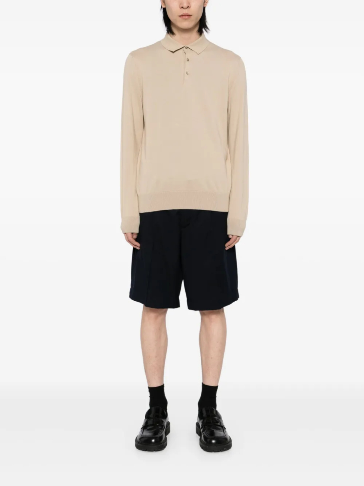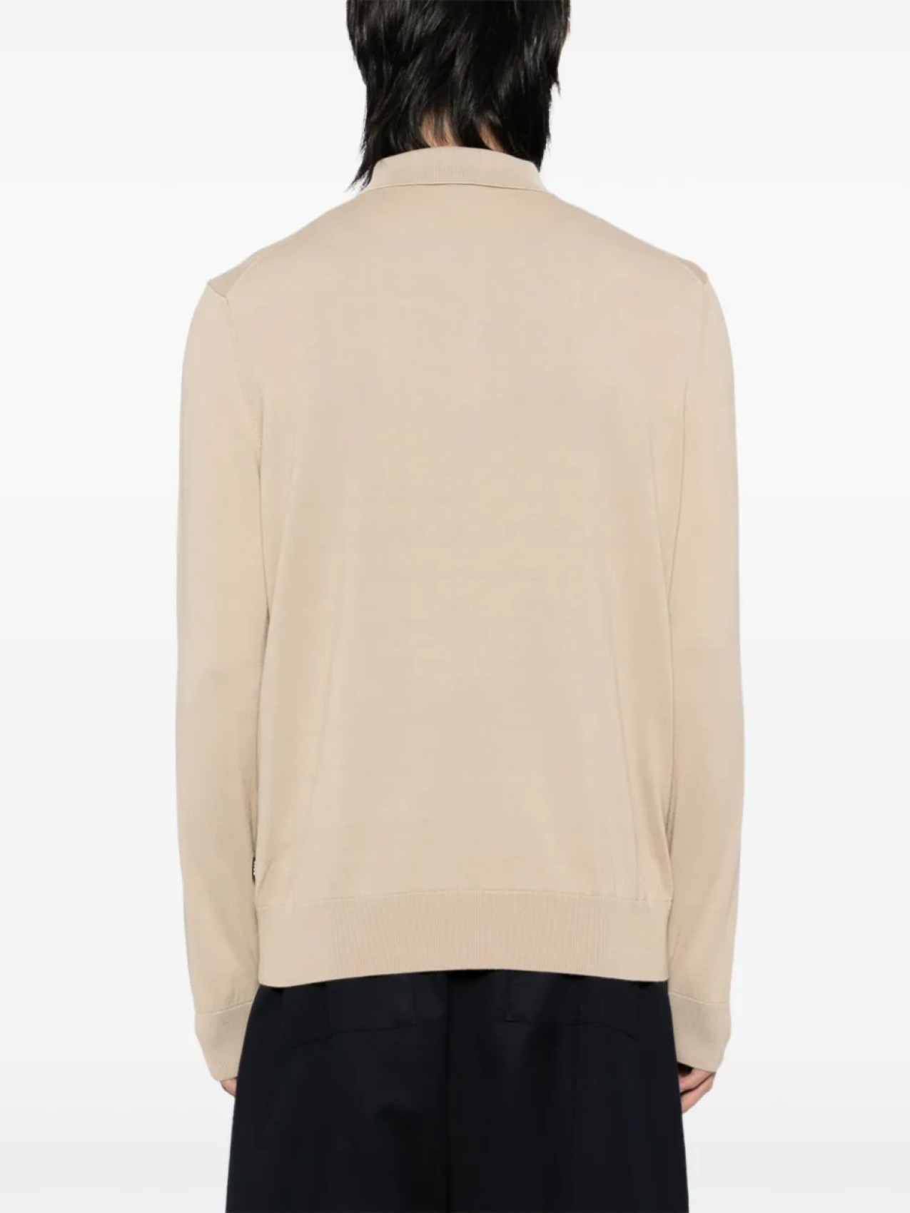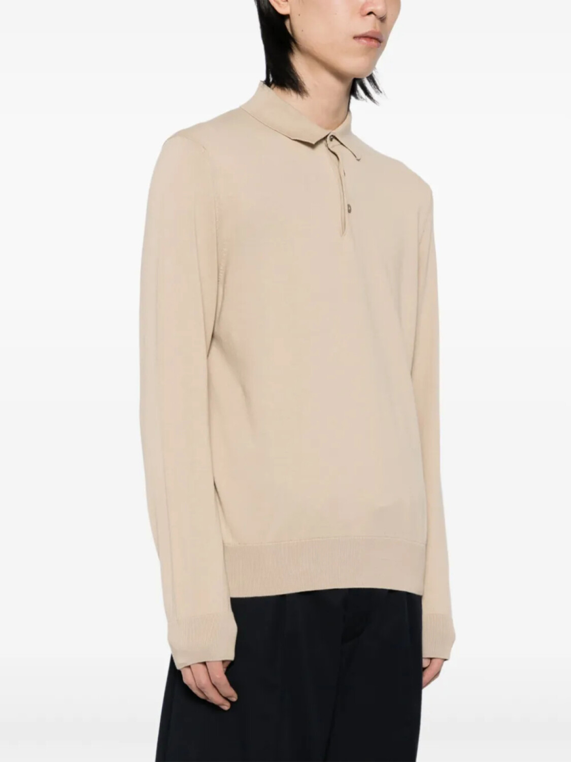 Воротник-поло цвета хаки, длинные рукава, ребристые манжеты и подол