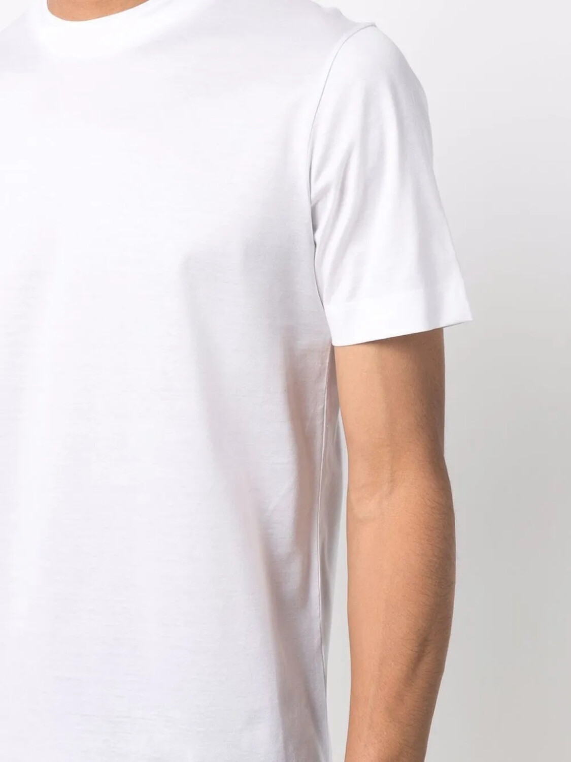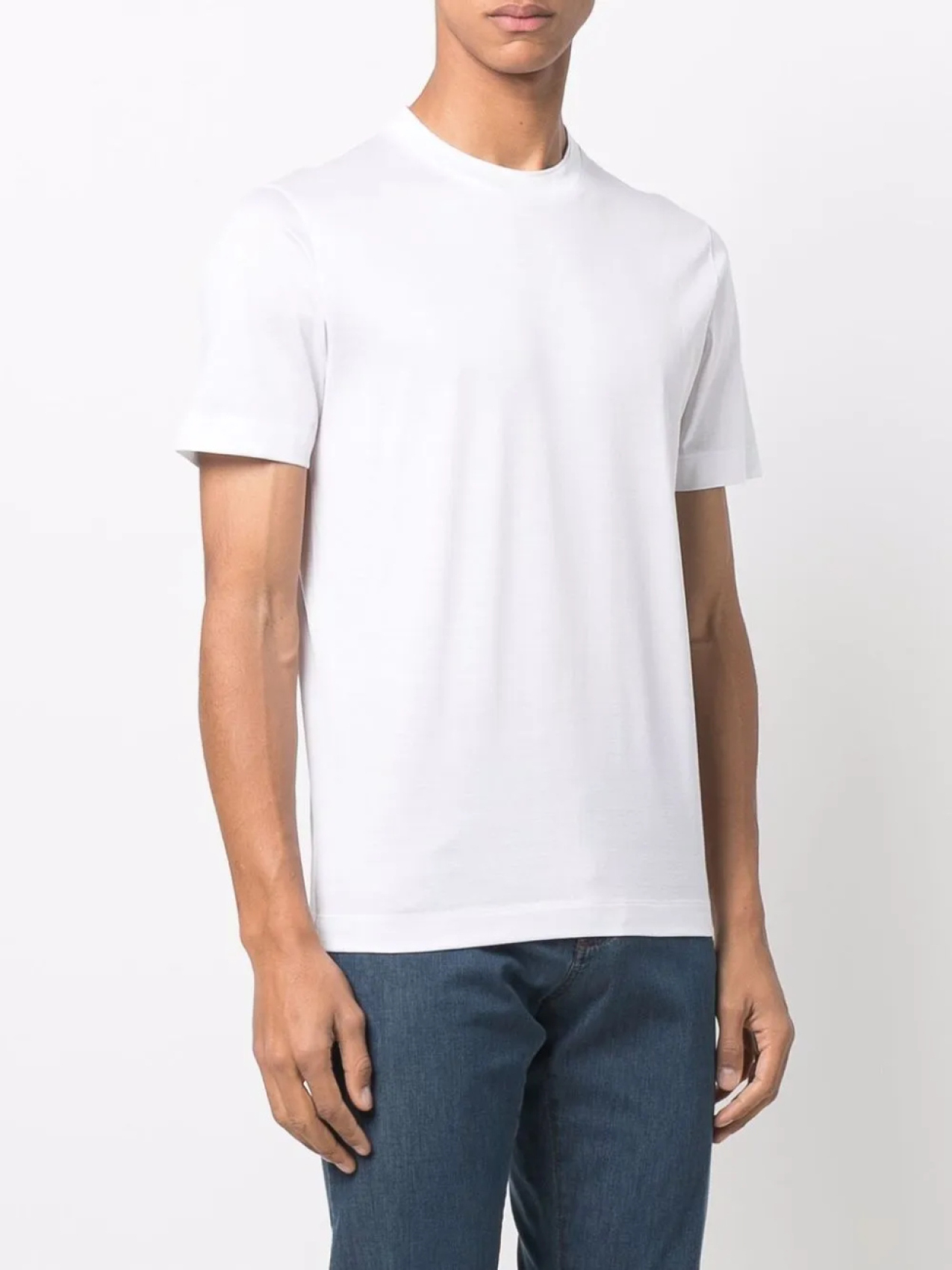 Ткань джерси, круглый вырез, короткие рукава и прямой подол. Цвет: белый.