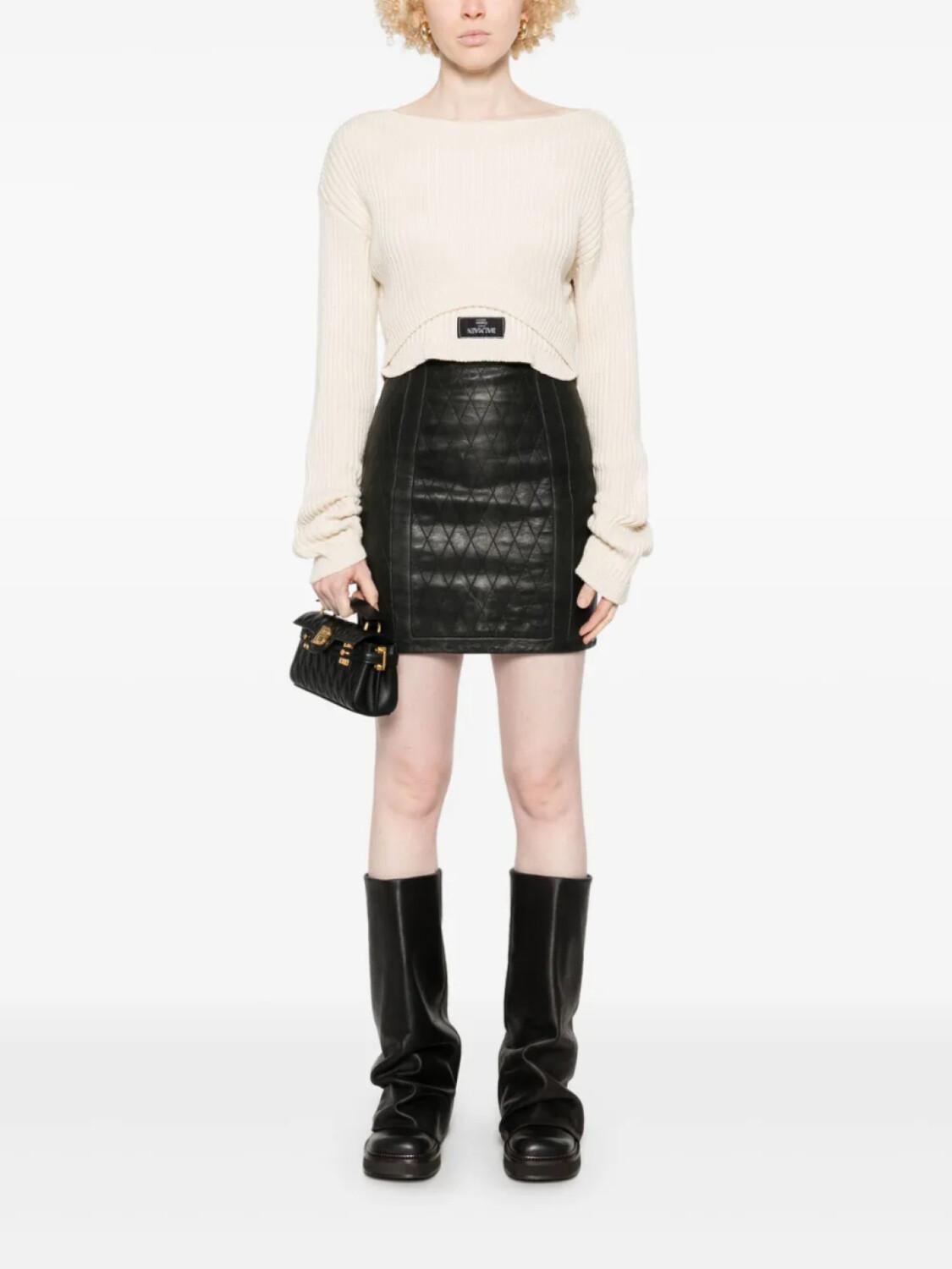 Balmain стеганая юбка мини из кожи, черный 91 203₽