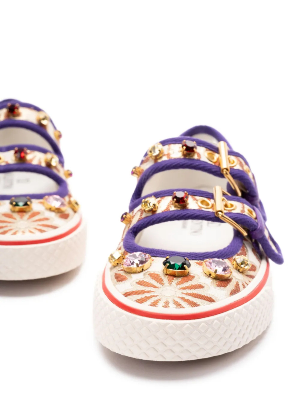 Светло-бежевый, с двойной пряжкой, плоская резиновая подошва, цветочная вышивка по всей поверхности, украшение из стеклянных кристаллов