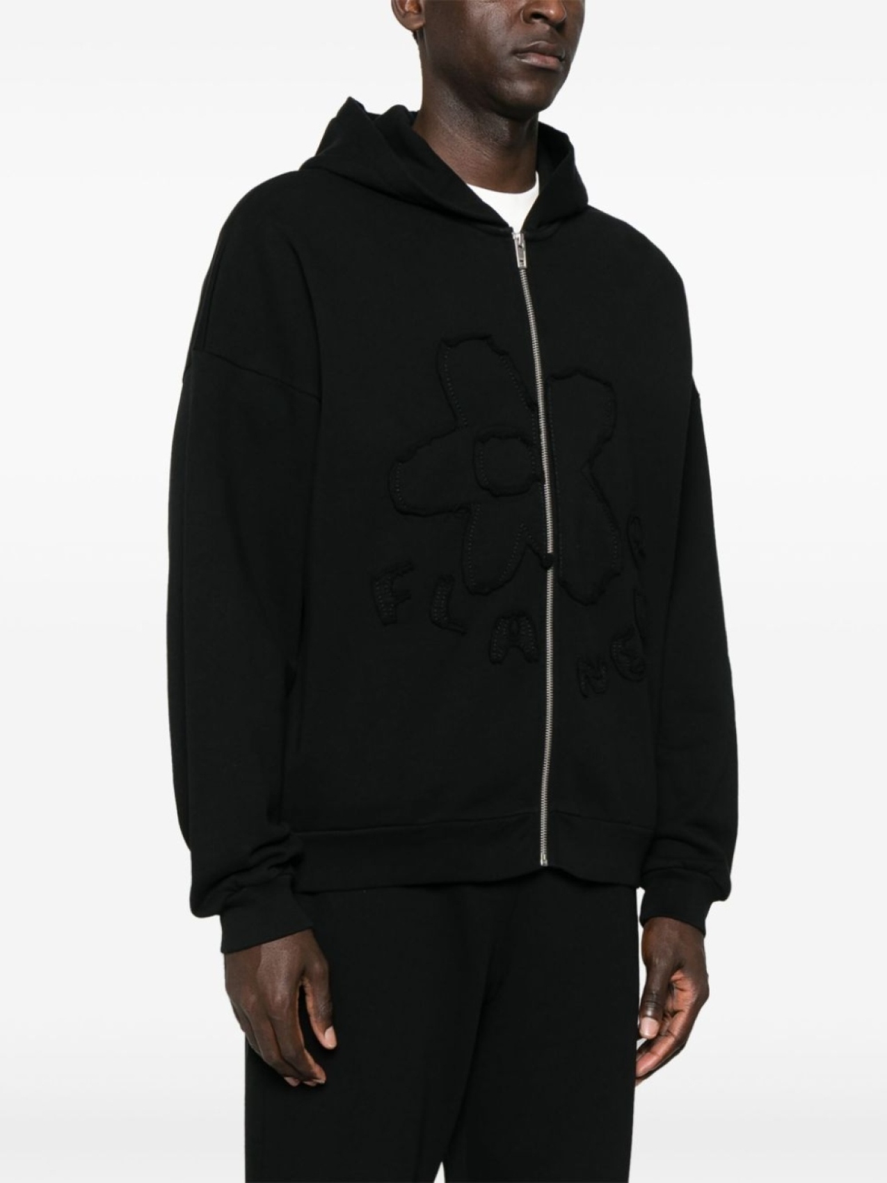 Толстовка с капюшоном FLÂNEUR с цветочными нашивками, черный