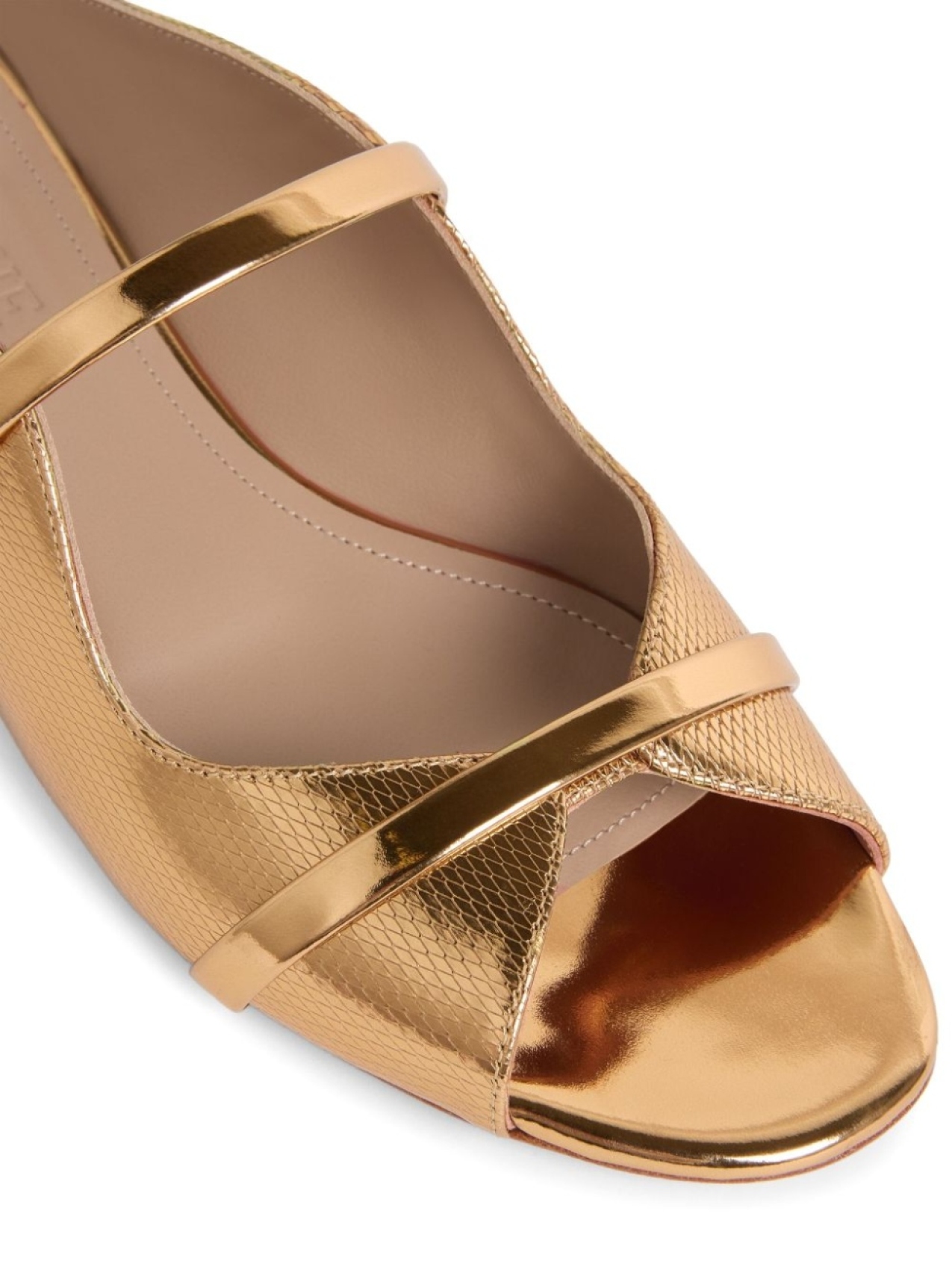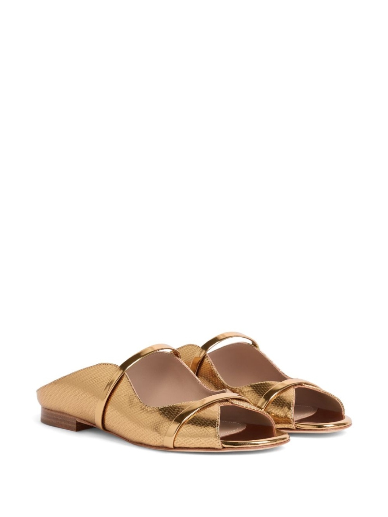 Золотистый, без застежки, открытый носок, плоская кожаная подошва, металлизированное покрытие