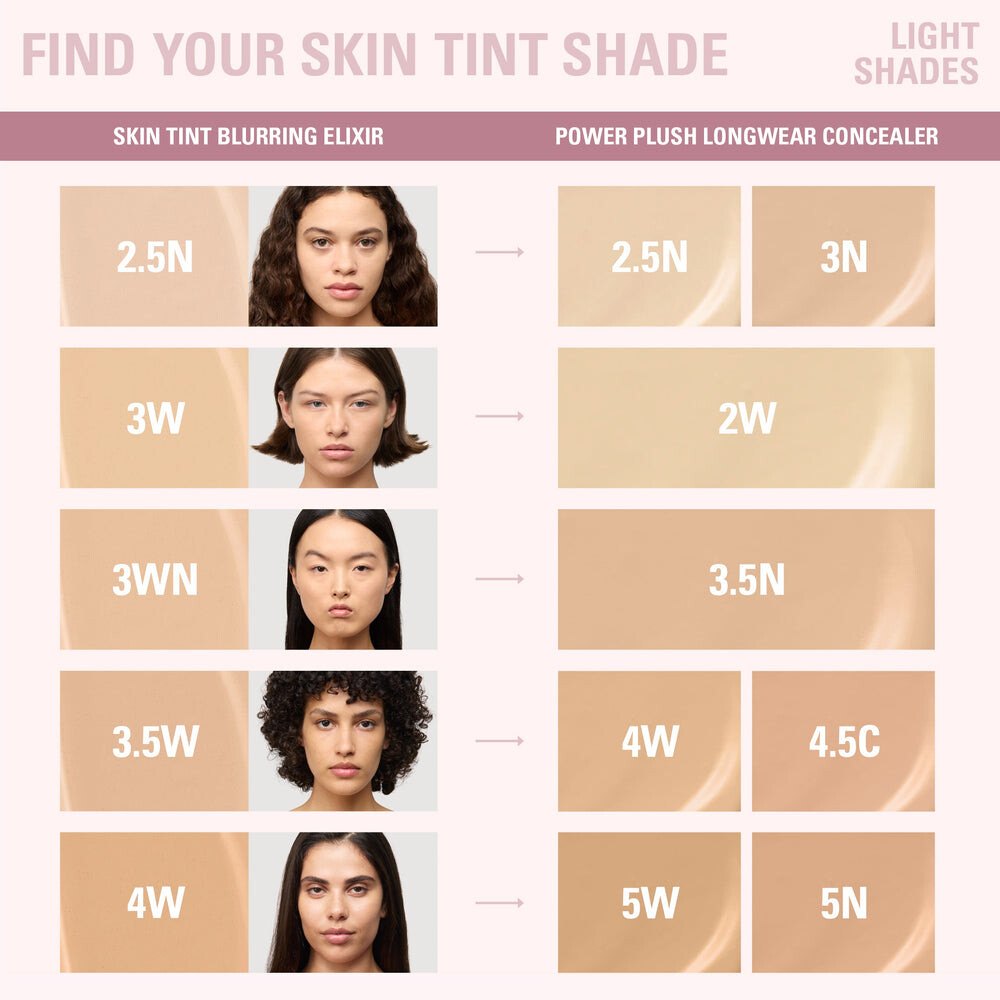 мой дуэт skin tint blurring elixir и power plush longwear консилера — это ваш выбор для естественного макияжа с идеальным покрытием. Нанесите skin tint blurring elixir для легкого или среднего покрытия с гладким эффектом второй кожи. Затем используйте power plush longwear консилер для точечной маскировки, осветления или контурирования.