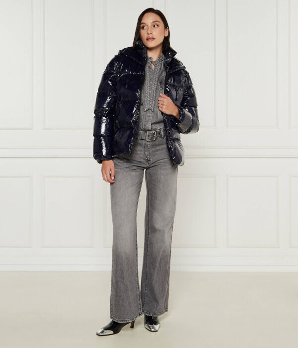 Пуховик женский Pinko короткий с капюшоном, синий