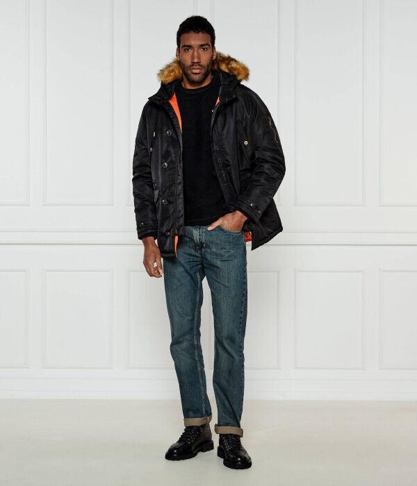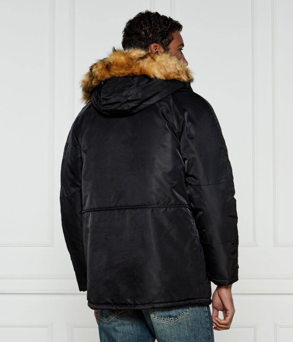 Куртка мужская Guess Jeans парка с мехом на капюшоне, черный